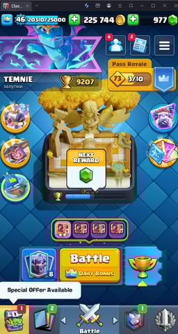 9155 TROPHY 🏆 43 LVL 💯 KT 14 👑 119 CARDS ♦️ 2 MAX CARDS 👑 1 ELITE CARDS 🔮 8 EVO 💯 EMOTE 44 🎭 #208YY22L92 ⸱ TAG ACCOUNT ♥️