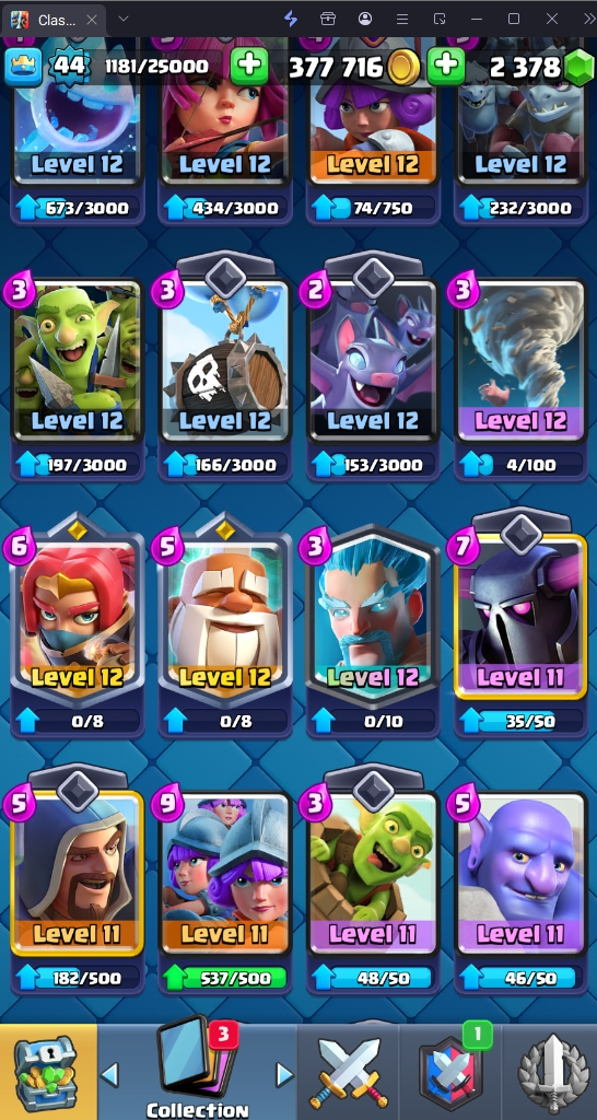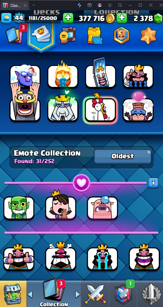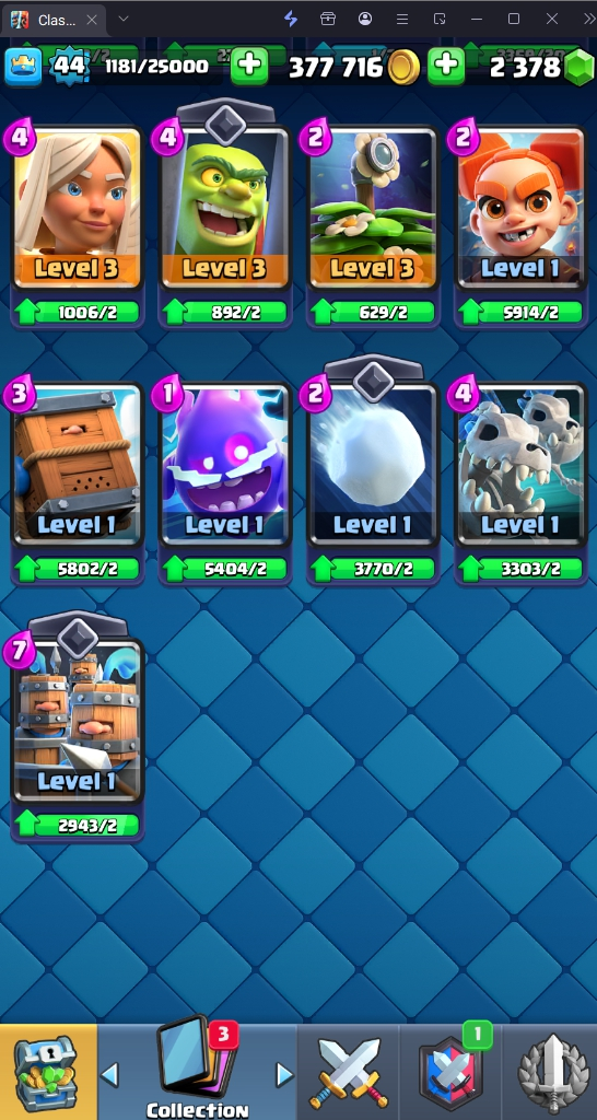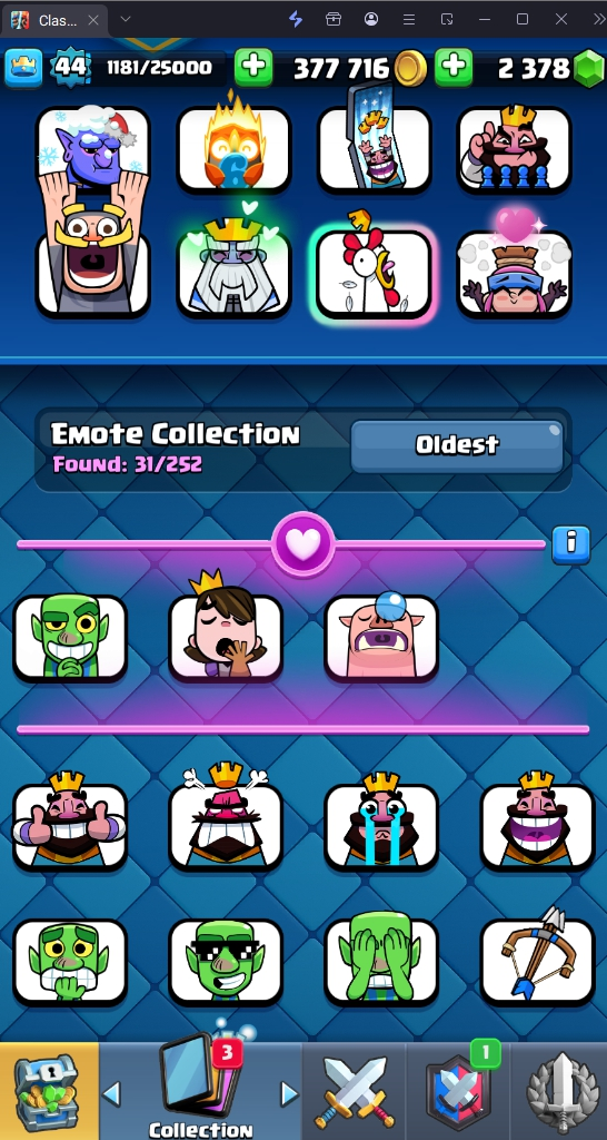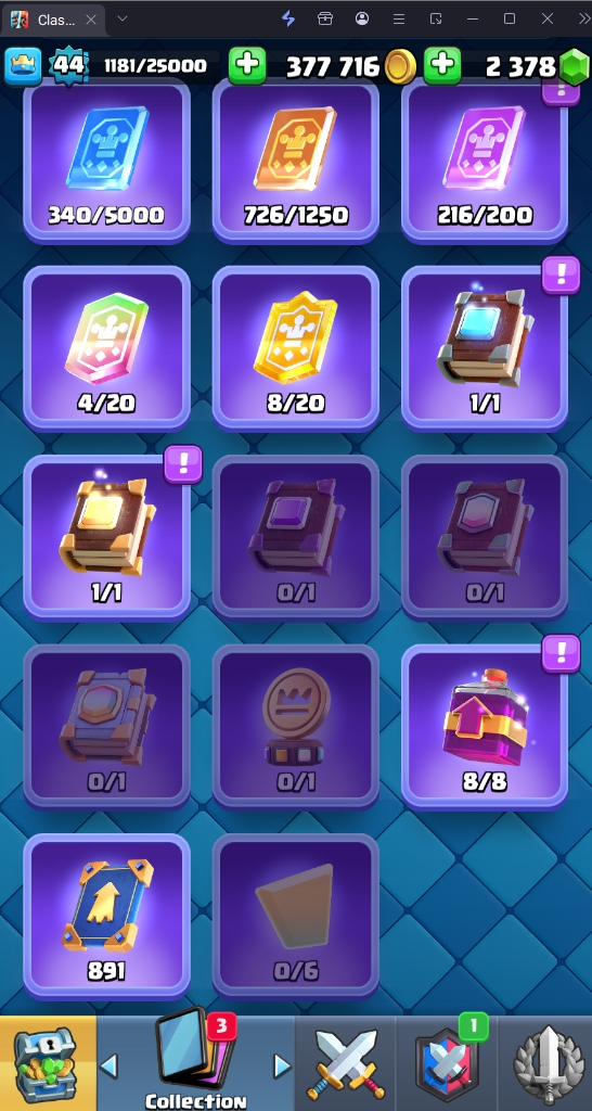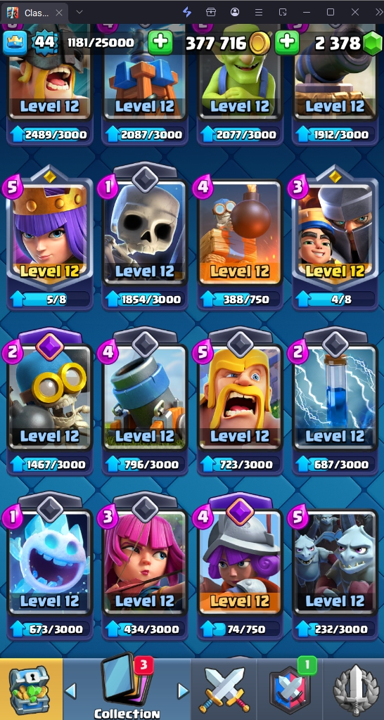 9560 TROPHY 🏆 44 LVL 💯 KT 14 👑 121 CARDS ♦️ 6 MAX CARDS 👑 1 ELITE CARDS 🔮 4 EVO 💯 EMOTE 31 🎭 #898UGL8PR ⸱ TAG ACCOUNT ♥️
