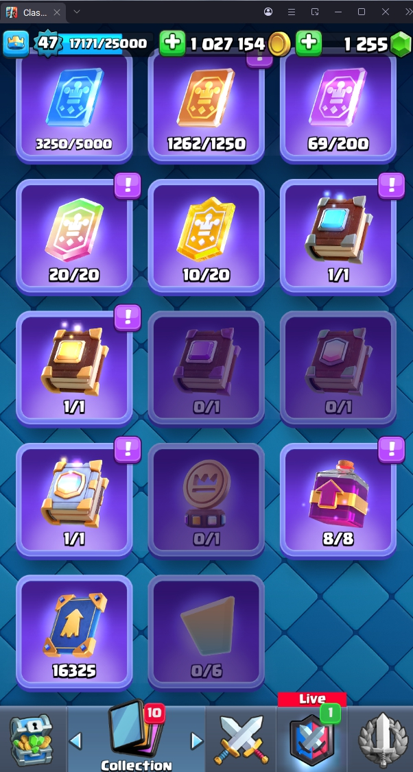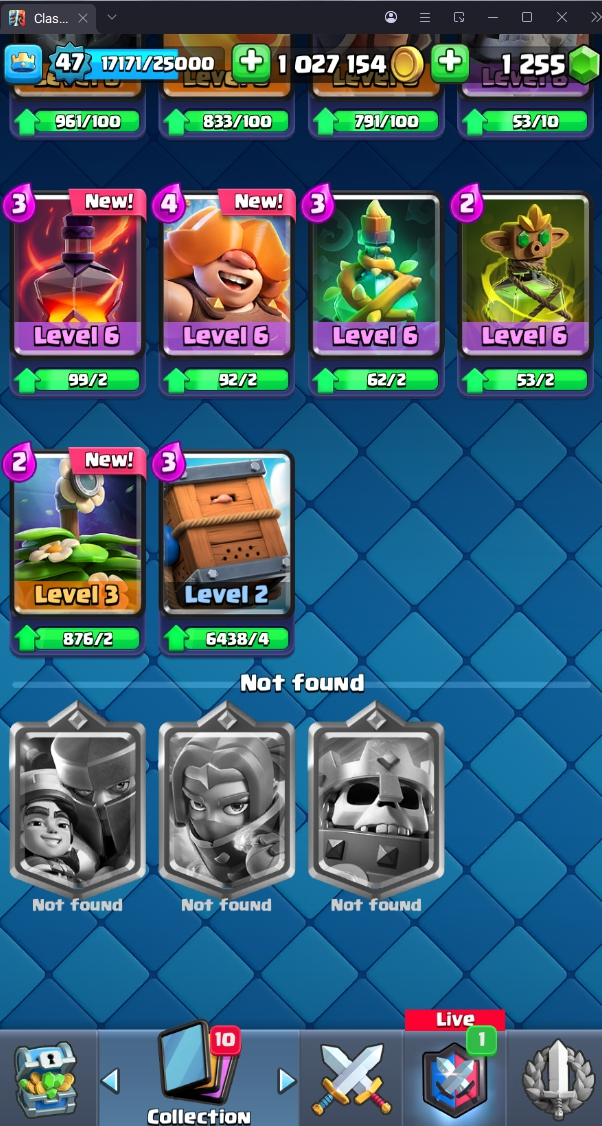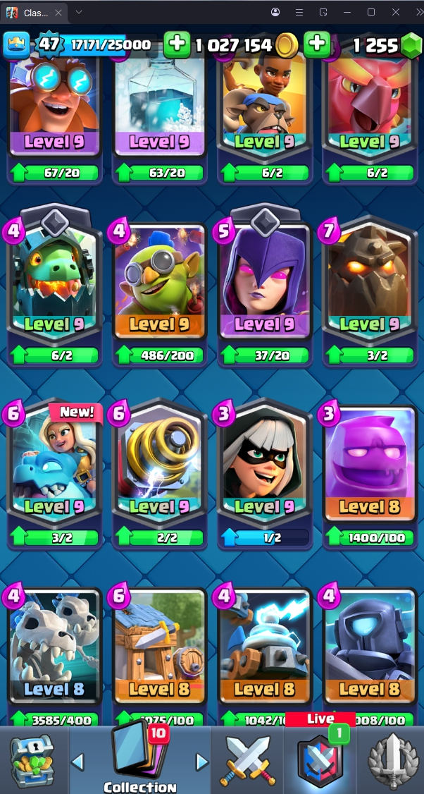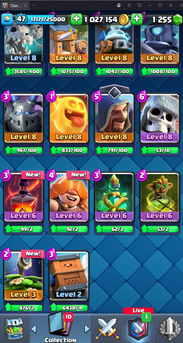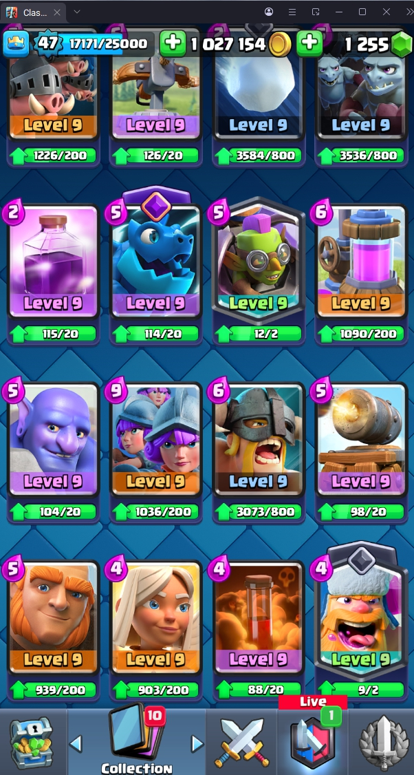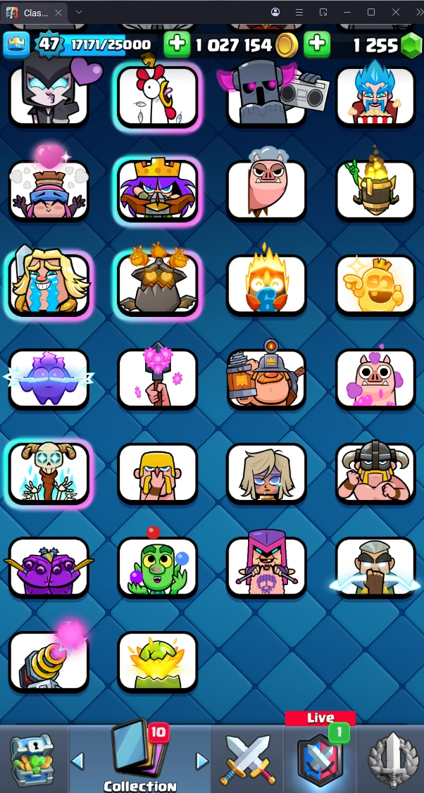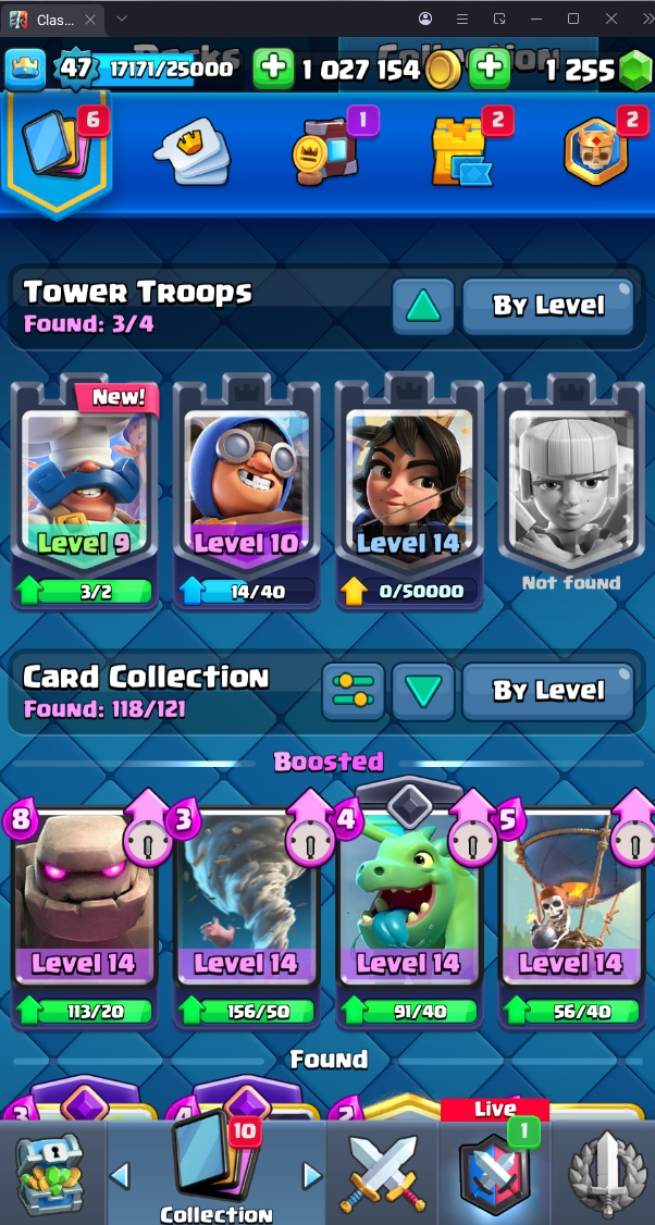 9681 TROPHY 🏆 47 LVL 💯 KT 14 👑 118 CARDS ♦️ 11 MAX CARDS 👑 3 ELITE CARDS  🔮 6 EVO 💯 EMOTE 69 🎭 #8C22JVUL9 ⸱ TAG ACCOUNT ♥️