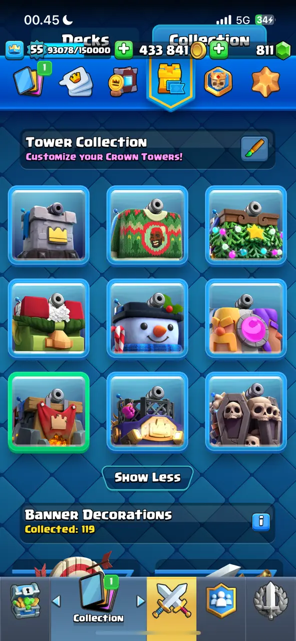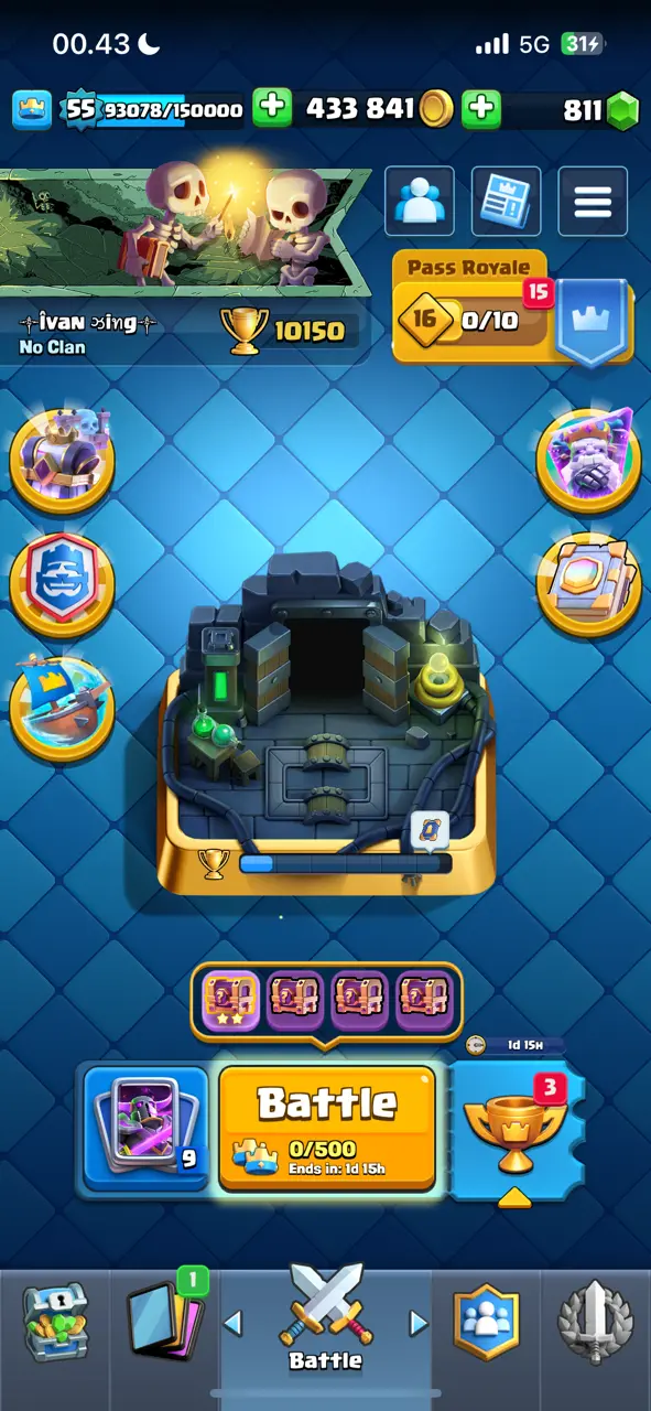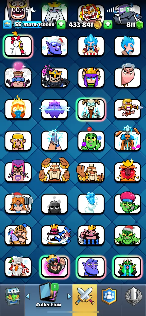 🔥 AWESOME 🔥 CR Lv.55 🔥 Seasonal Arena 1 🔥 10150 Trophies 🔥 KT 15 🔥 16 Evo Cards 🔥 30 Max Cards & 8 Elites 🔥 108 Emotes 🔥 9 Tower Skins 🔥 [F2779] 🔥