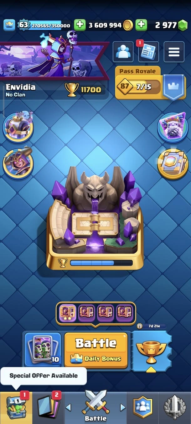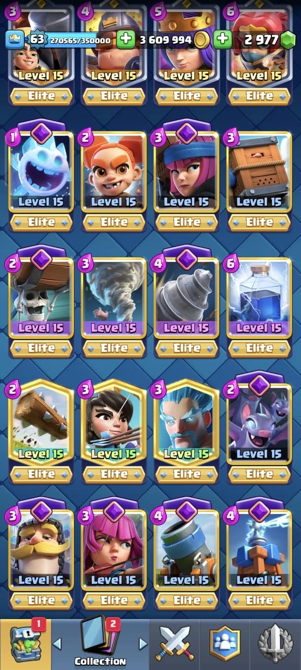 CR LV 63 🔥 Super good Evo 28 🔥 Max Cards 115 🔥 Elite 41 🔥 Emote 152 🔥 Trophy 11700 🔥 Change name On 🔥 Cheap 🔥