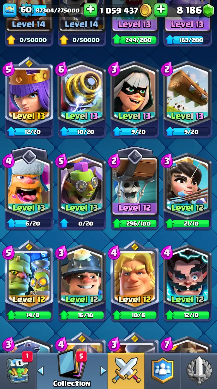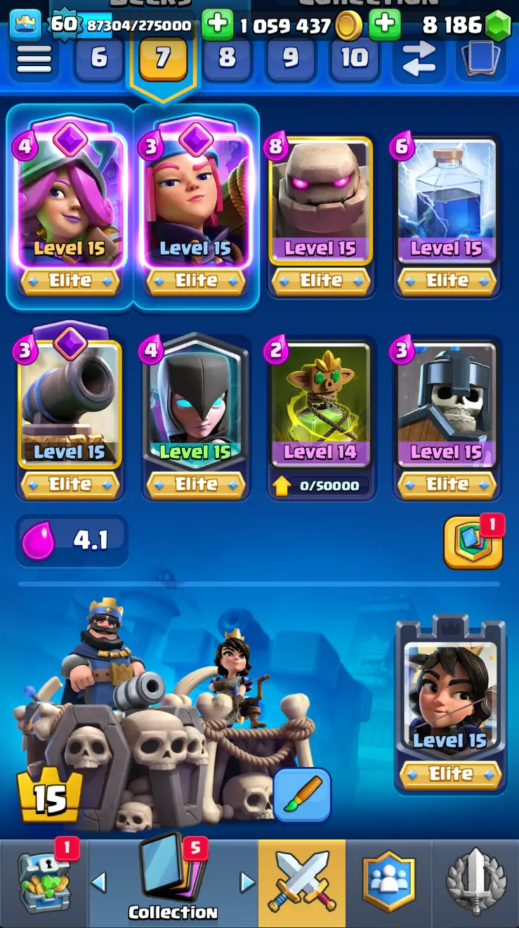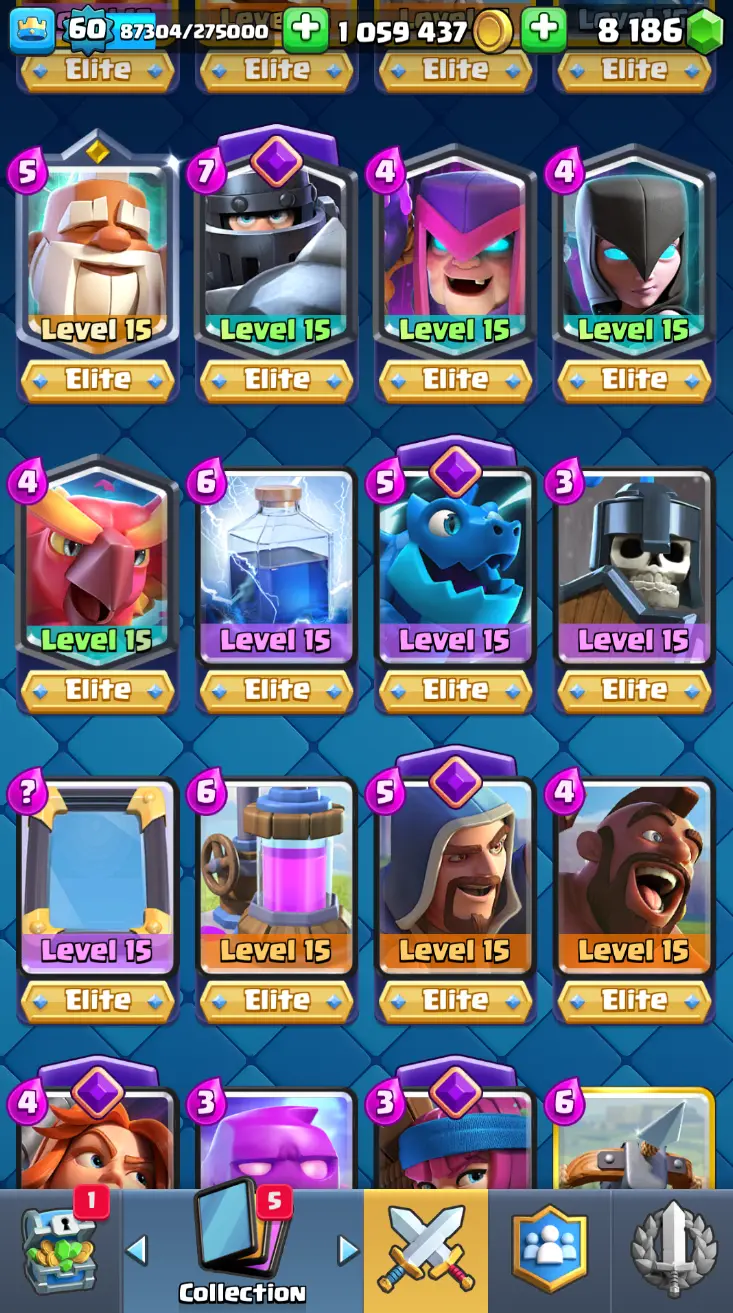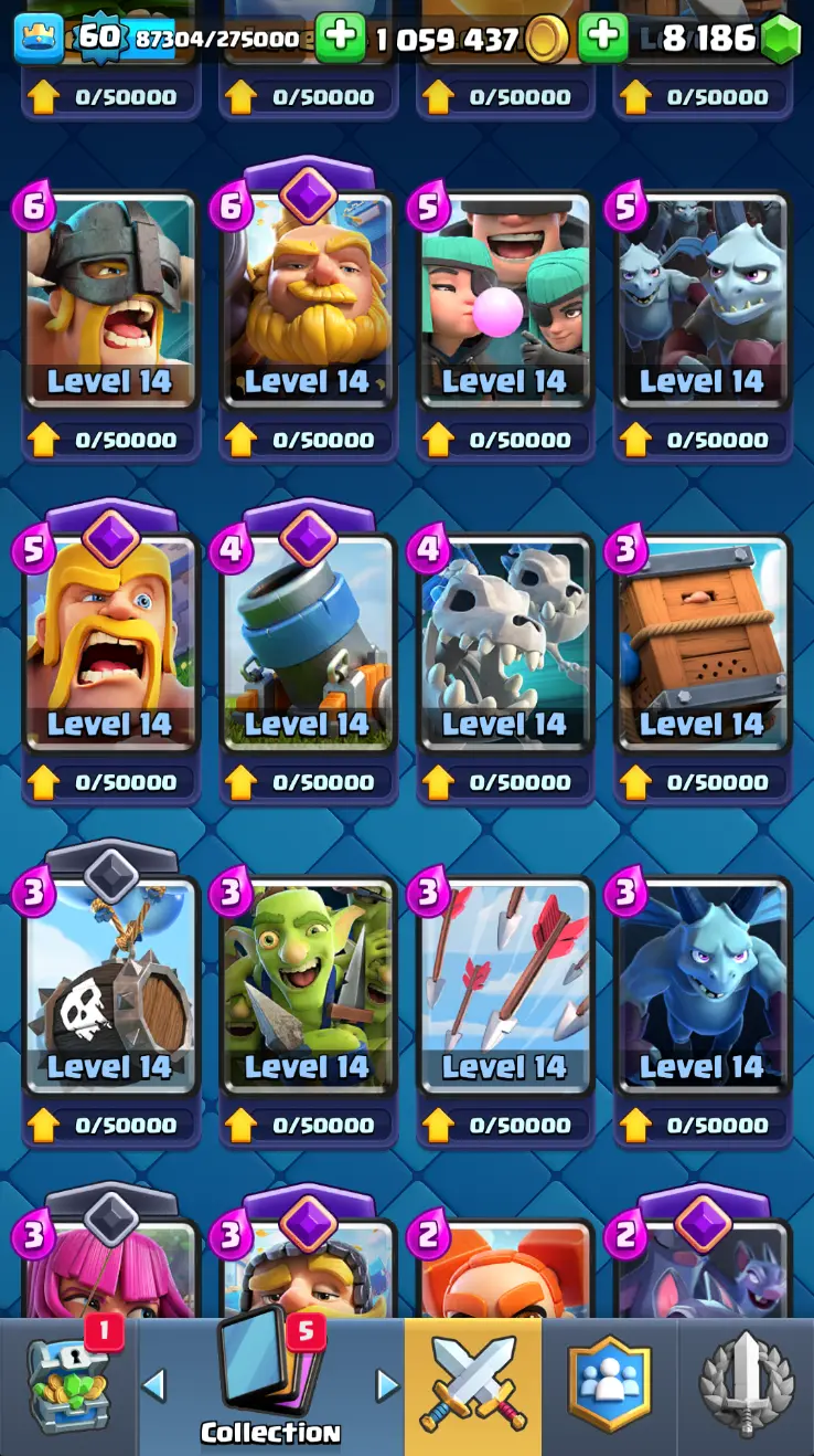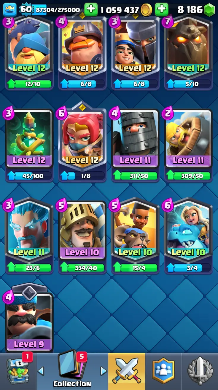 ◀️ KT 15 ▶️ LEVEL 60 🤩 12150 TROPHIES 🏆 23 ELITE CARD 🙀 67 MAX CARD 😎 15 EVO ☠️ 91 EMOTE 😍 10 SKIN 👽 121 CARDS 💳 1m GOLD 💰 8186 GEMS 💎 RL145