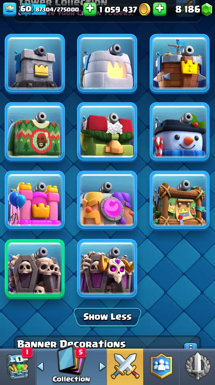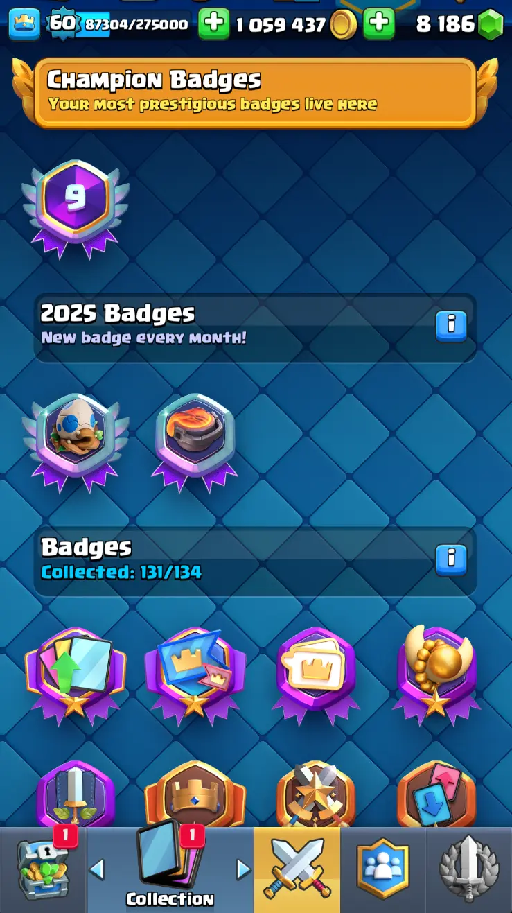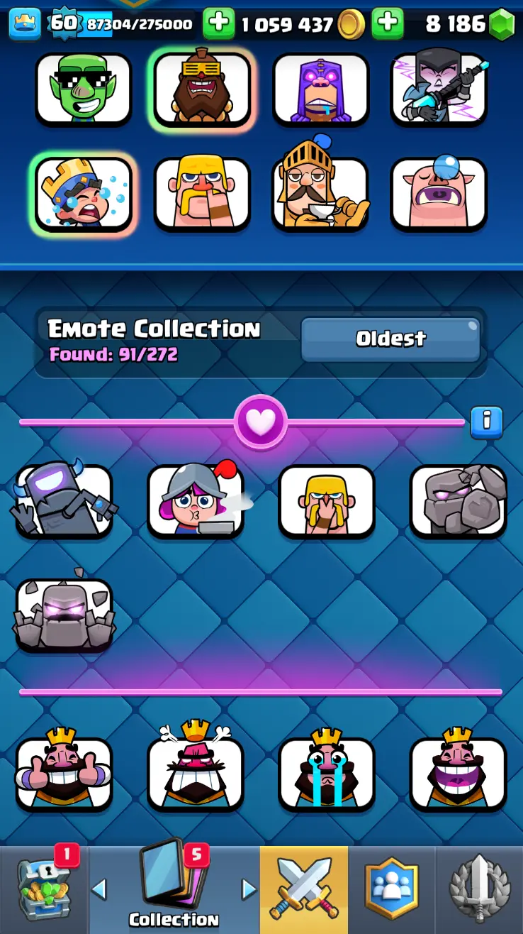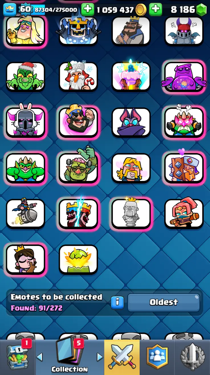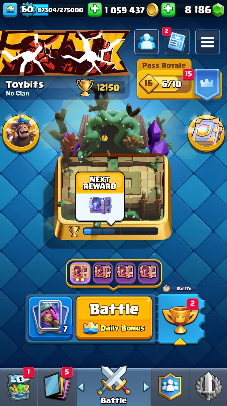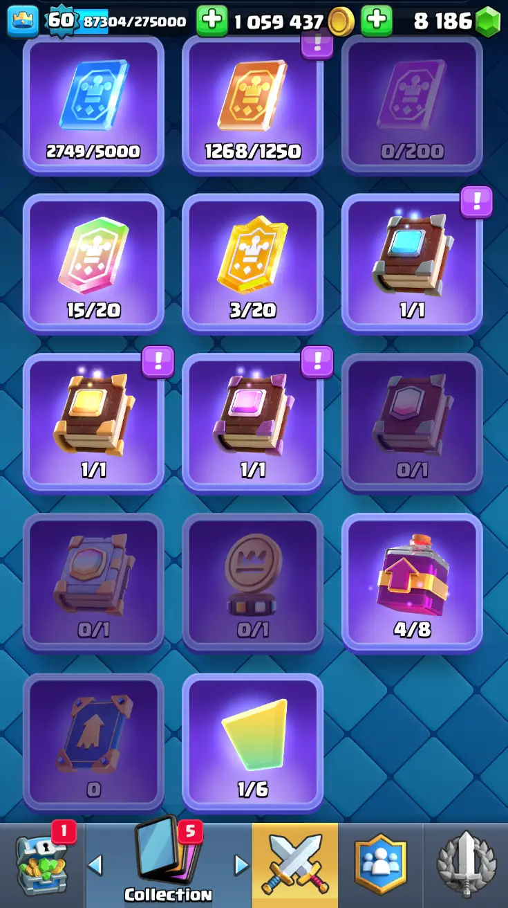 ◀️ KT 15 ▶️ LEVEL 60 🤩 12150 TROPHIES 🏆 23 ELITE CARD 🙀 67 MAX CARD 😎 15 EVO ☠️ 91 EMOTE 😍 10 SKIN 👽 121 CARDS 💳 1m GOLD 💰 8186 GEMS 💎 RL145