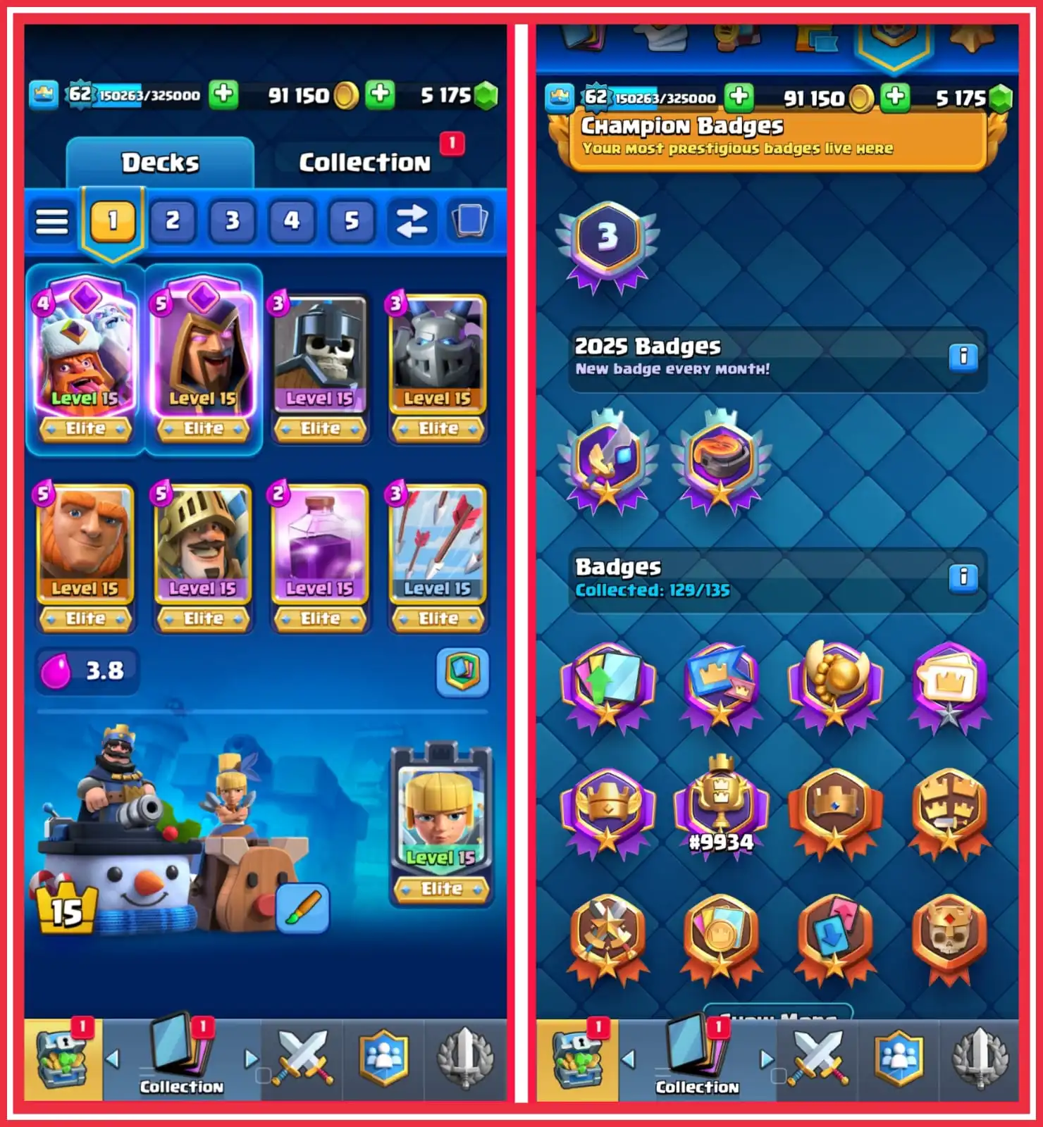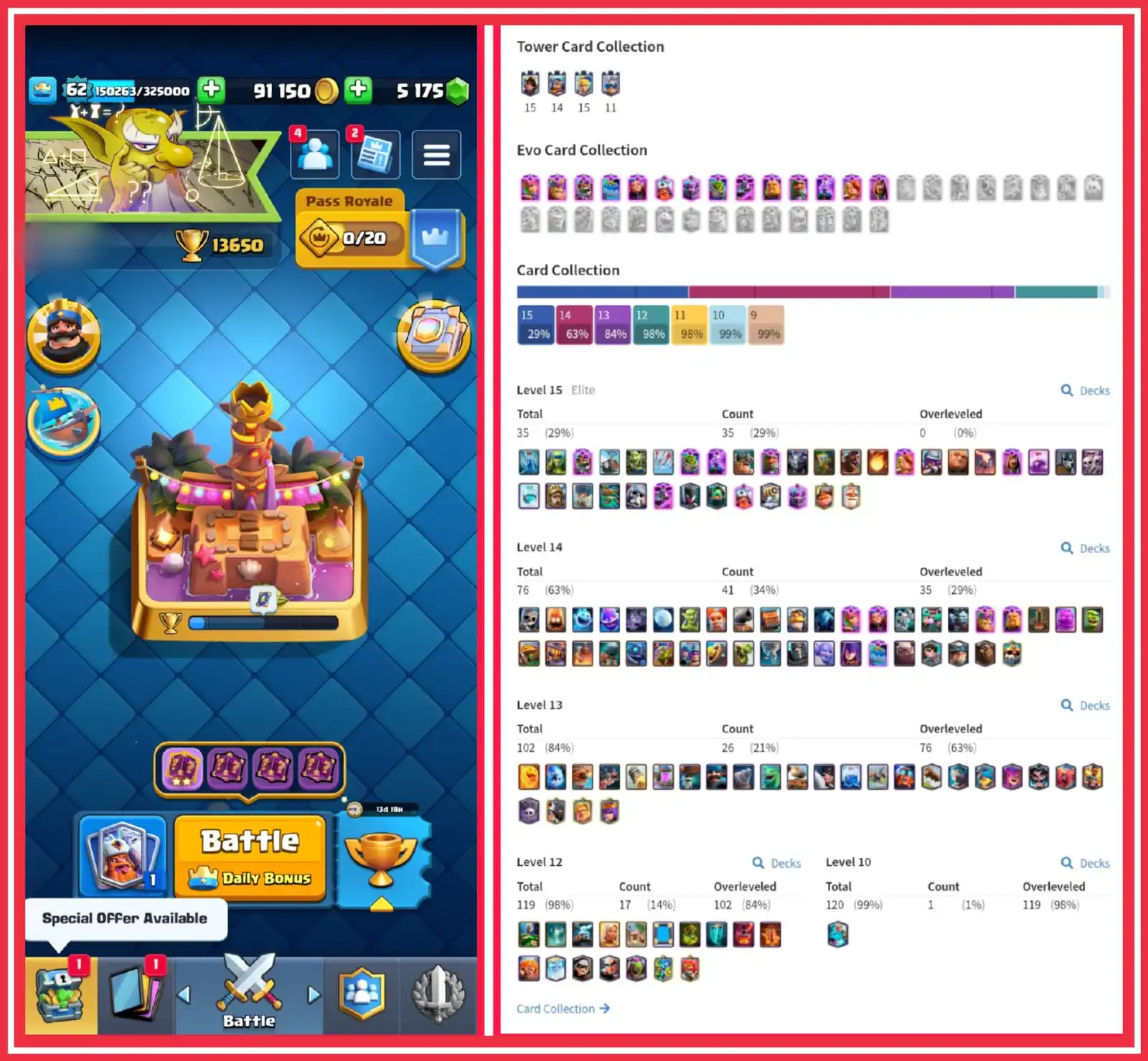 LEVEL 62 🚀😍 13650 TROPHIES 🏆 SEASONAL ARENA LEVEL 4 ❤ KT LEVEL 15 ☠ 14 EVOLUTION CARDS 🤩 35 ELITE CARDS 😍 76 MAX CARDS ☠🎁 NAME CHANGE 500 GEMS 💎☠ CHEAP PRICE 💸 INSTANT DELIVERY ☑💯 ANDROID & IOS ☑🤝