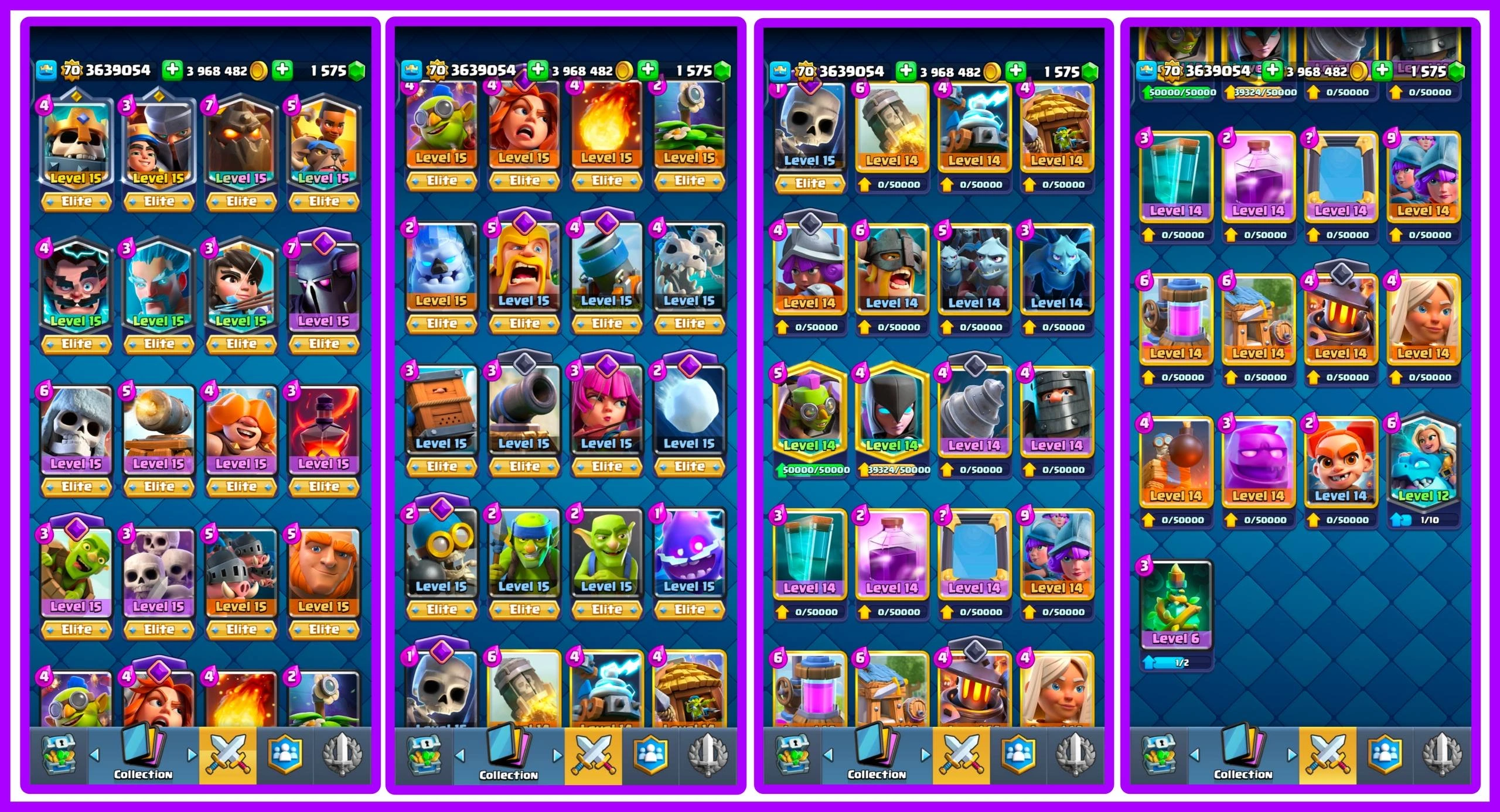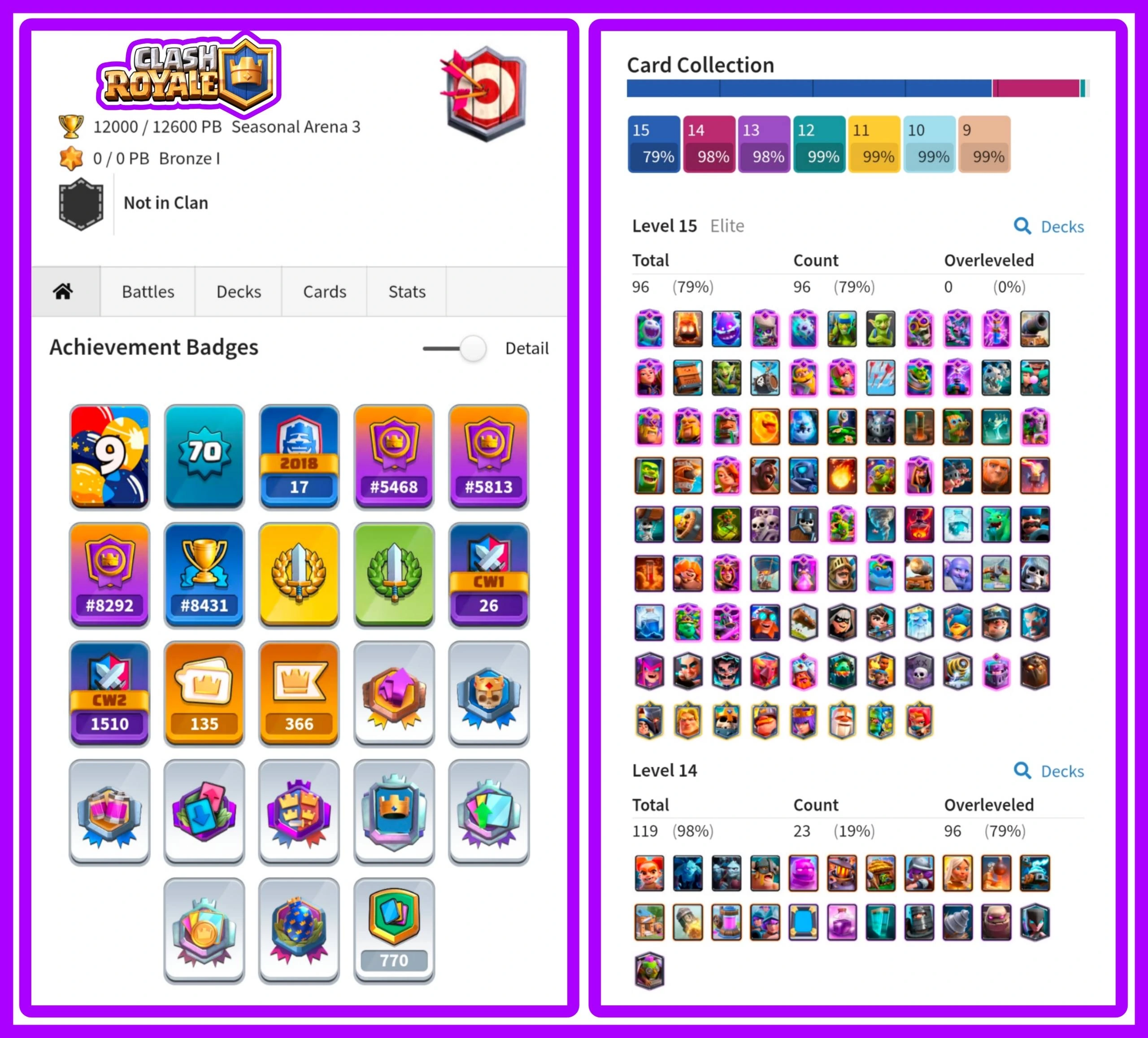 Level 70 ✨ 119 Max Cards 🥰 96 Elite Cards 🔥 135 Total Emotes 🫣 Royal Ghost Gem Emote 😳 Many Tower Skins 🤗 Instant Delivery ⚡