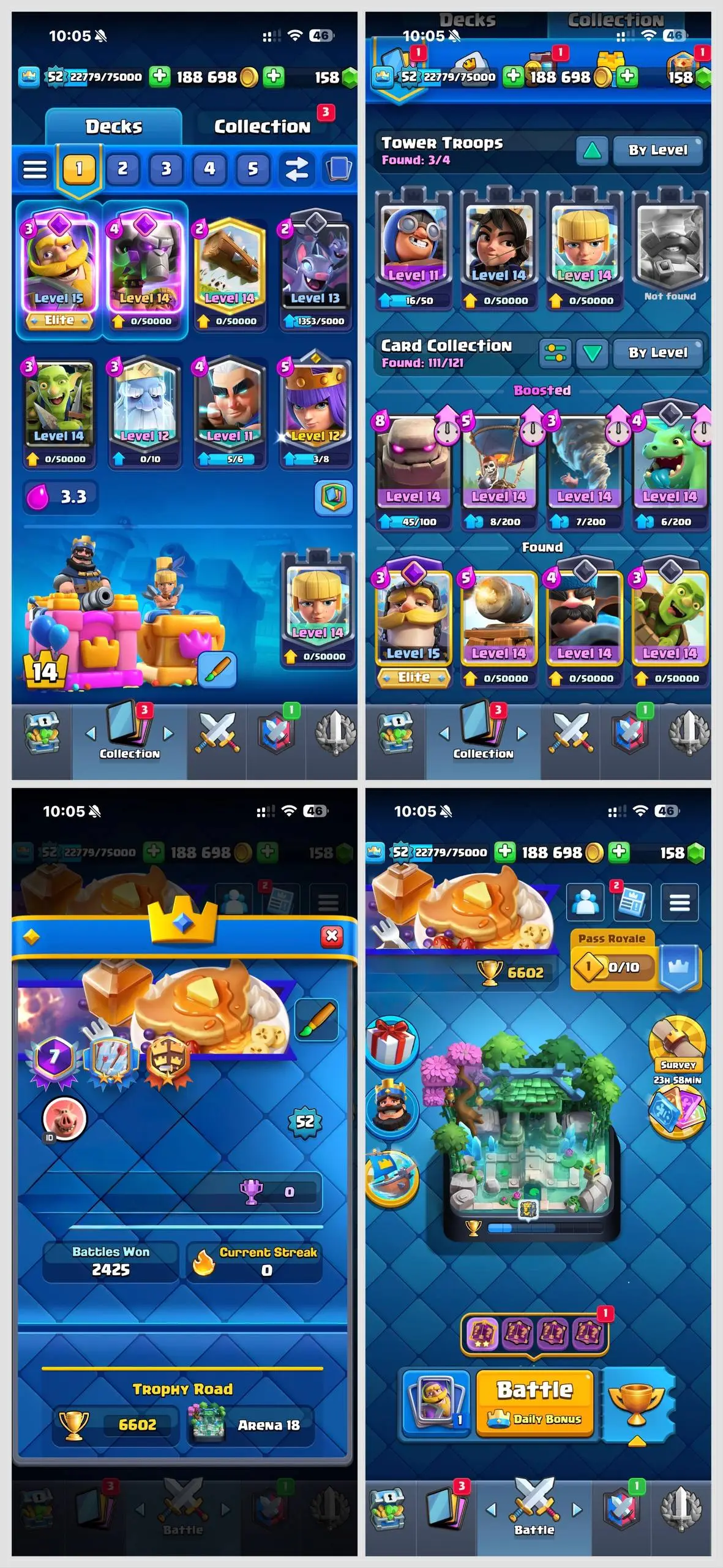 ✨🔥RAREST 7-YEAR OLD ACC 👻 [] 92 EMOTES 🎭 [] XP 52 ⭐️ [] 6602 TROPHIES 🏆 [] 29 MAX CARDS 🎴 [] ARENA 18 🏟 [] KT 14 👑 [] INSTANT 🚀