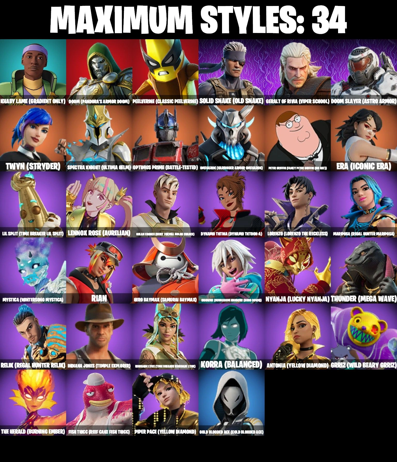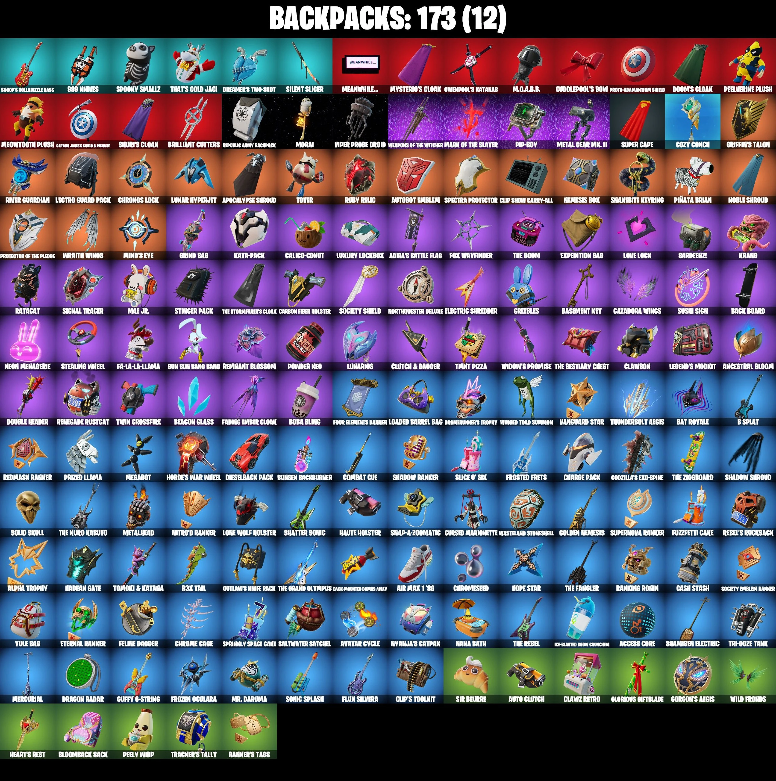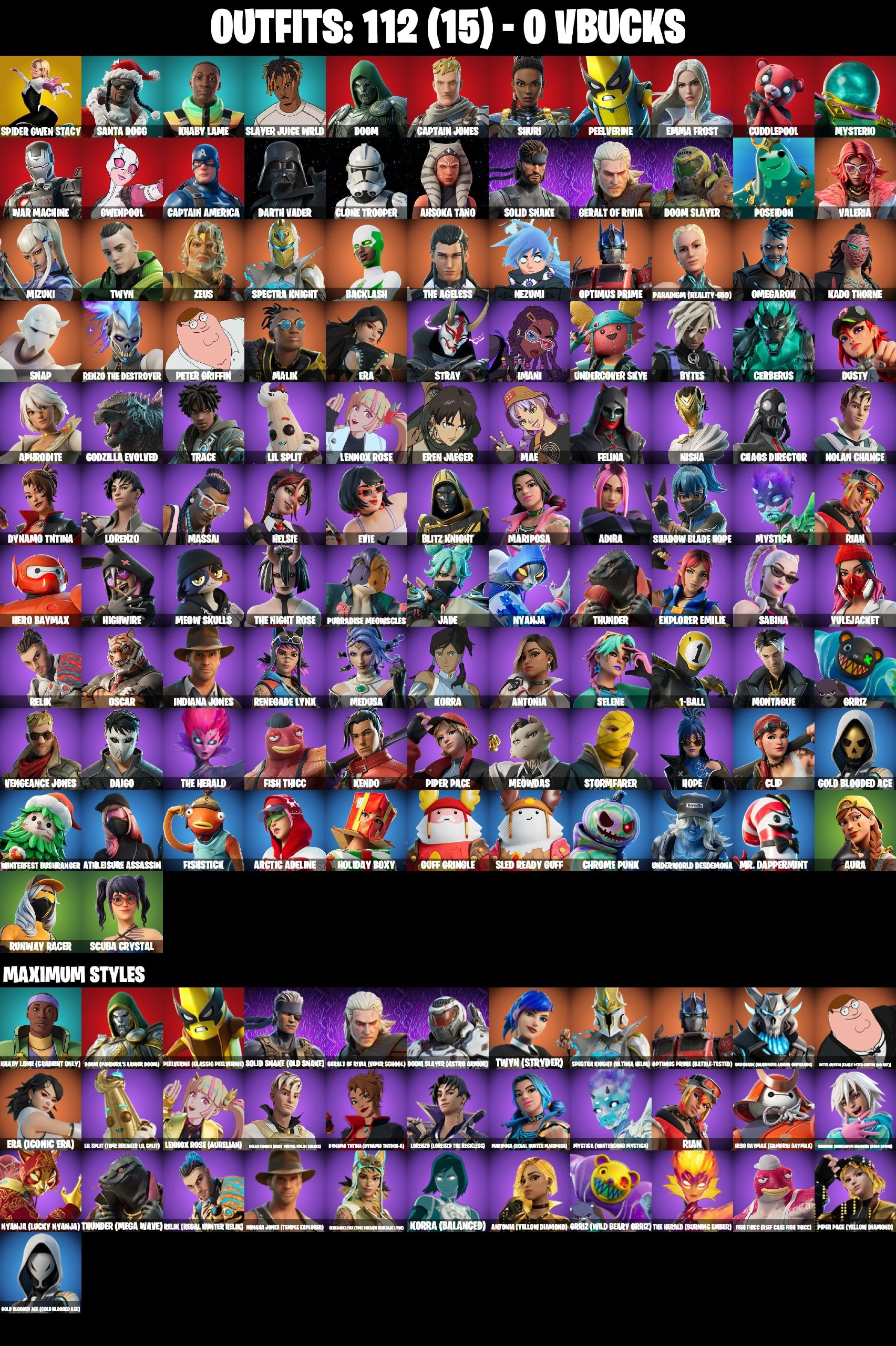 112 SKINS | BACKLASH | SPIDER-GWEN STACY | CUDDLEPOOL | DARTH VADER | GET GRIDDY | CLONE TROOPER | AHSOKA TANO | EREN JAEGER | ERA MAX | MYSTICA MAX | MARIPOSA MAX | AURA | HELSIE | EVIE | MEOW SKULLS | FISHSTICK | CAN PLAY ON PSN
