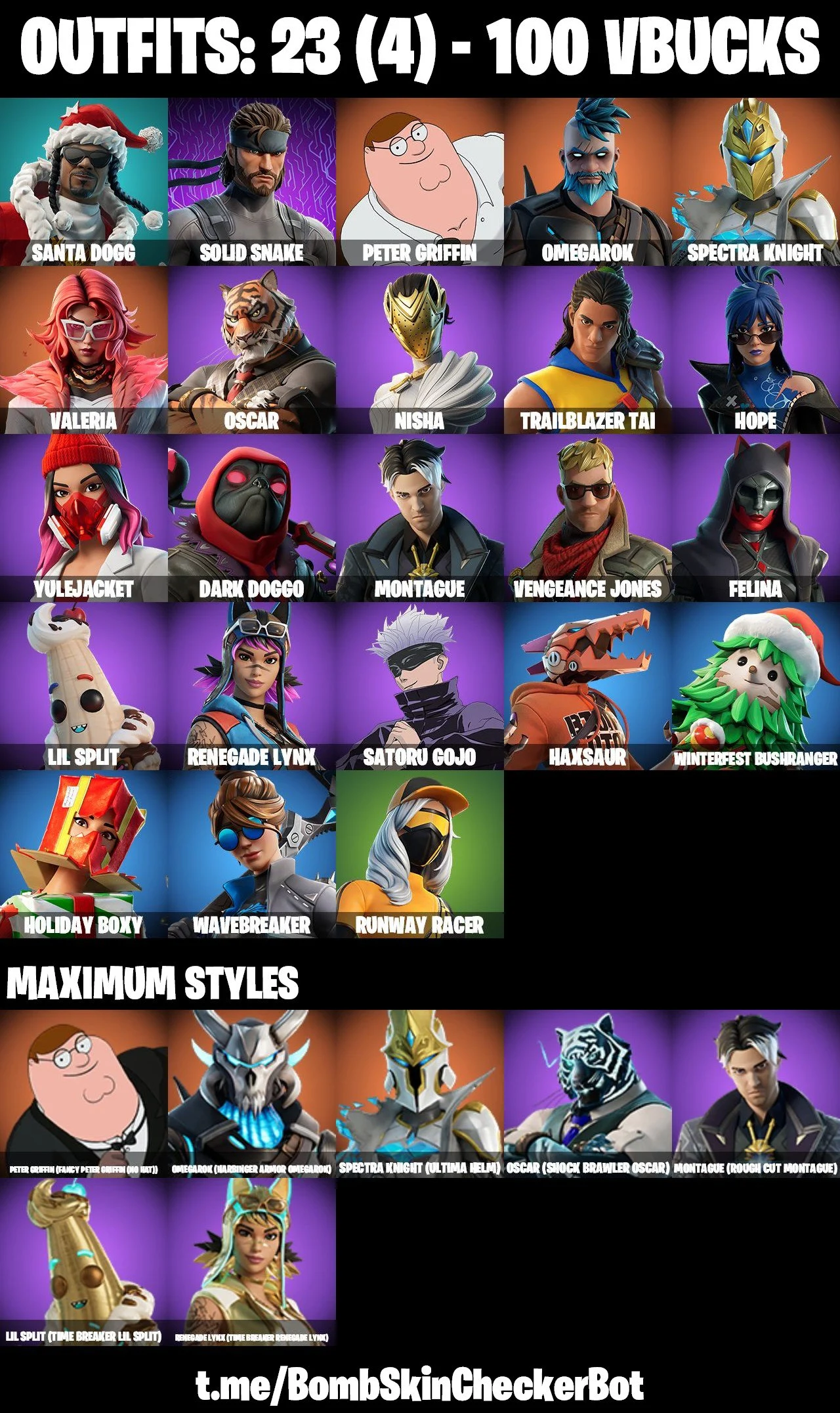 🔮23 Skins🔮 Solid Snake💎Wavebreaker💎Holiday Boxy💎Winterfest Bushranger