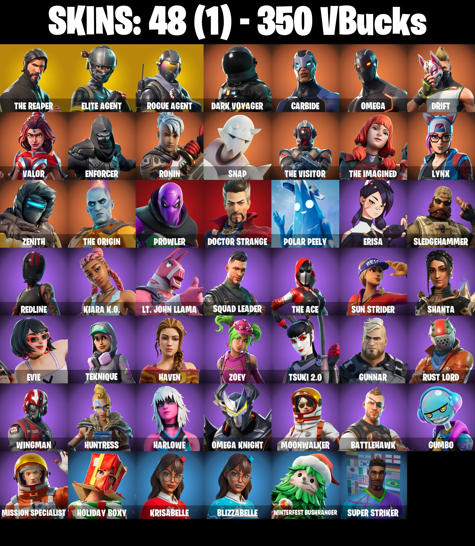 🎆48 SKINS ⚡️PC⚡️ THE REAPER 👑 ELITE AGENT 👑 ROGUE AGENT 👑 DARK VOYAGER 👑 CARBIDE 👑 OMEGA 👑 DRIFT 👑 VALOR 👑 ENFORCER 👑 RONIN 👑 SNAP ⚡️ 350 VB #M472