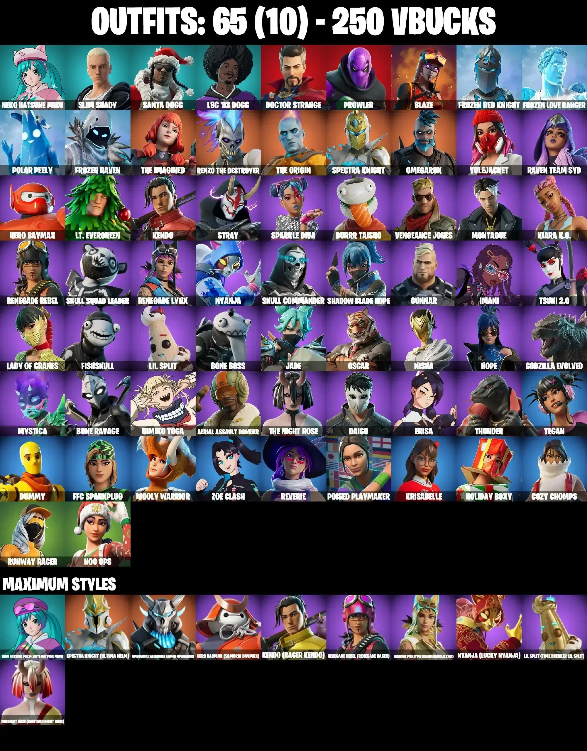 65 SKINS | STAR WAND | GET GRIDDY | WINDMILL FLOSS | HIMIKO | DUMMY | NEKO HATSUNE MIKU MAX | LADY OF CRANES | TSUKI 2.0 | REVERIE | DURRR TAISHO | NOG OPS | REAPER | PEPPERMINT PICK | CAN PLAY ON PSN,XBOX,PC,NINTENDO,MOBILE | 2