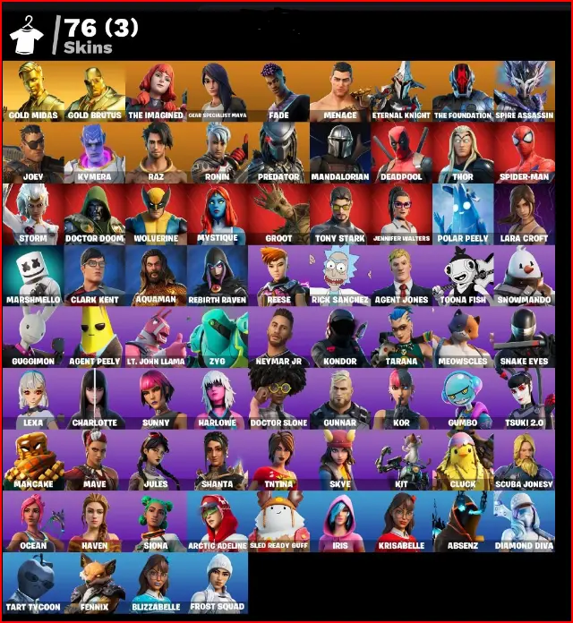 Deadpool 🌸 76 Skin 🌸 Gold Midas🌸Spiderman 🌸LaraCarft