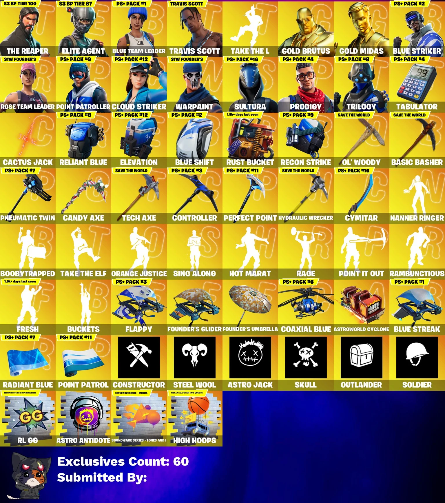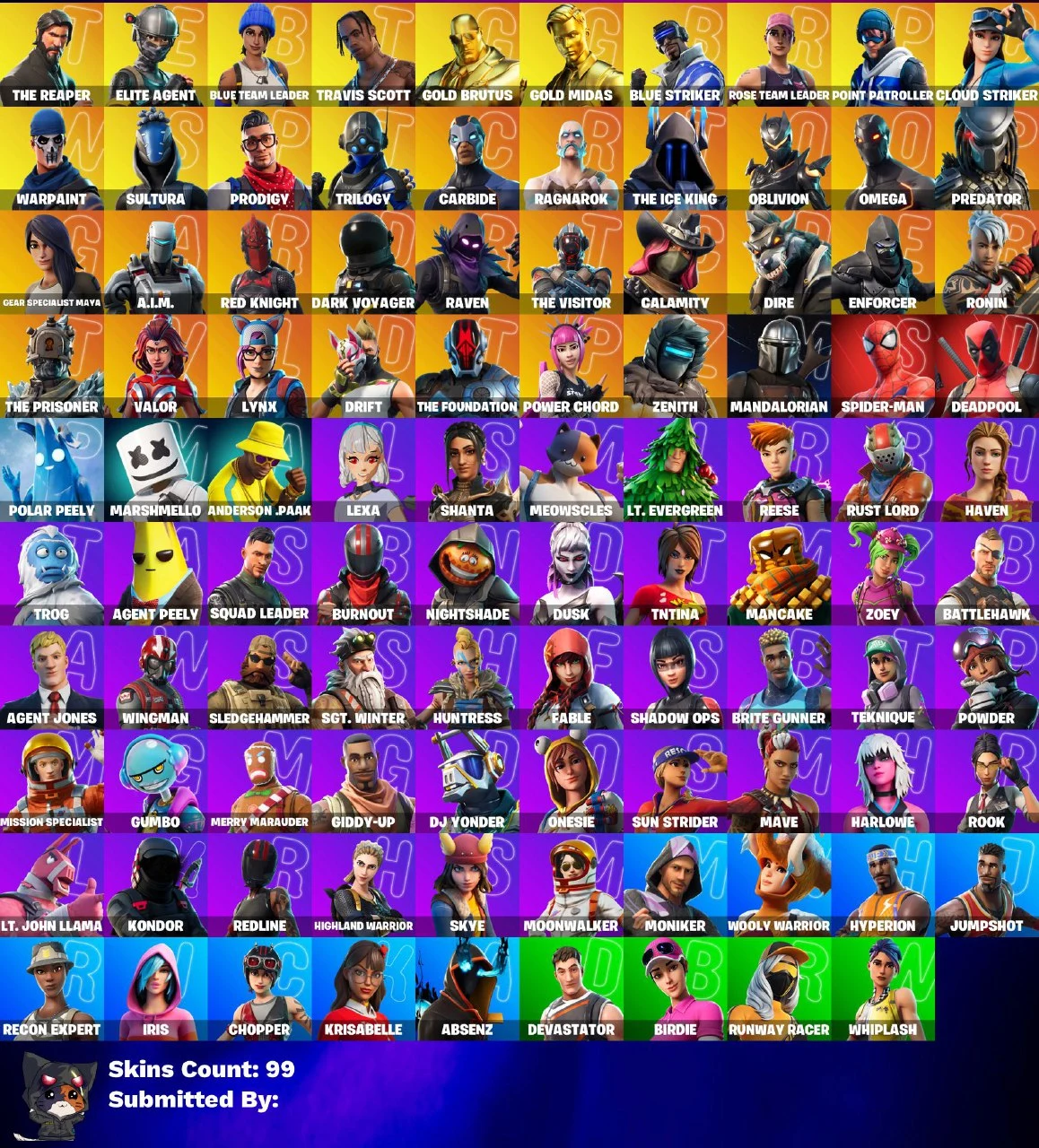 π₯π EXCLUSIVE OFFER ππ₯ 99 SKINS π TRAVIS SCOTT π THE REAPER π TAKE THE L π ELITE AGENT π GOLD BRUTUS π GOLD MIDAS π BLUE STRIKER π POINT PATROLLER π CLOUD STRIKER π SULTURA π PRODIGY π TRILOGY π CARBIDE π RAGNAROK π 260 VB π OG STW π FULL ACCESS π