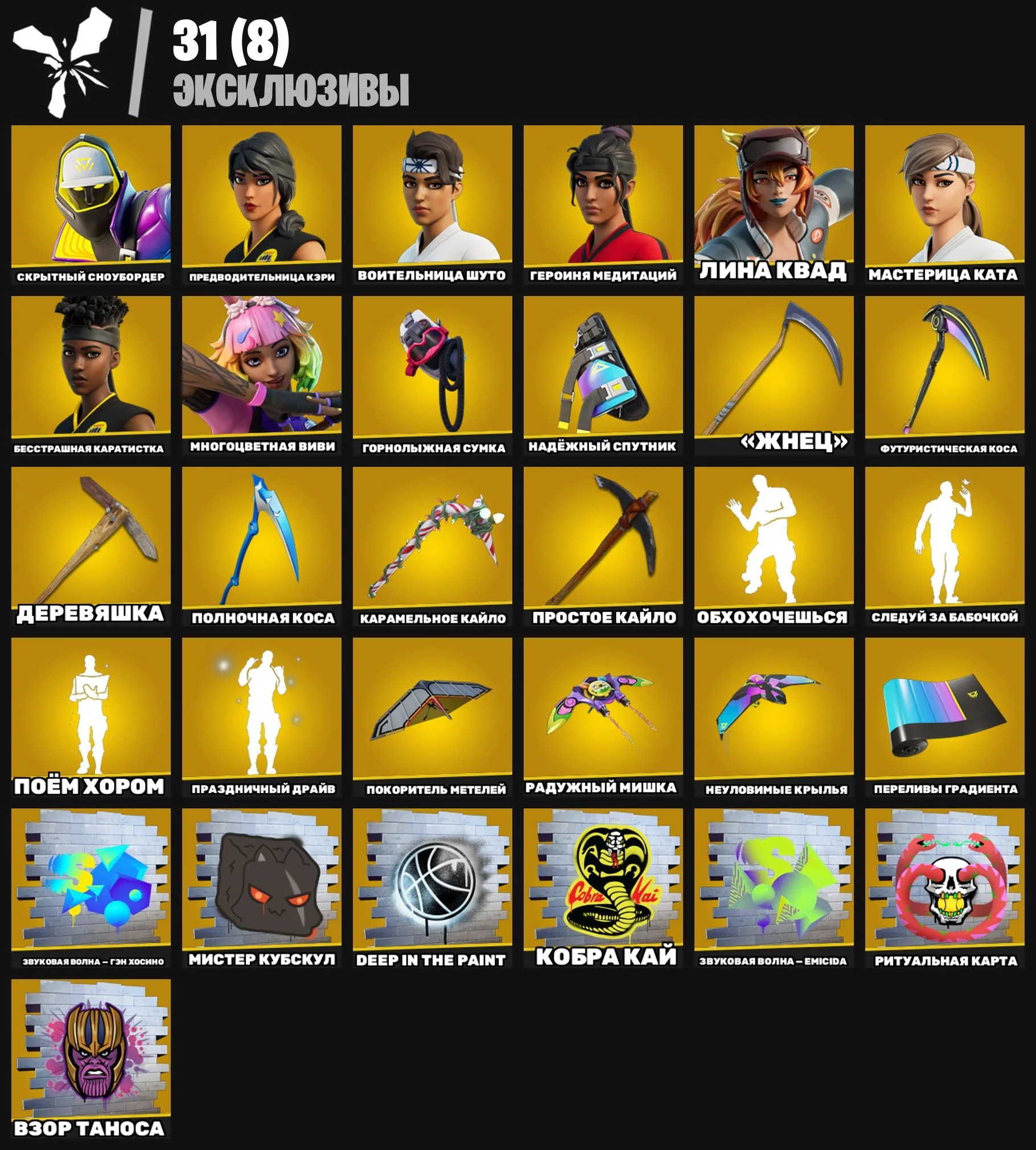 F757 // CHUN LI // LINA QUAD // SNOWBOARDER // KYLO // REAPER // FUNNY FUCK // VIVI // SNOWBOARDER // KARATE