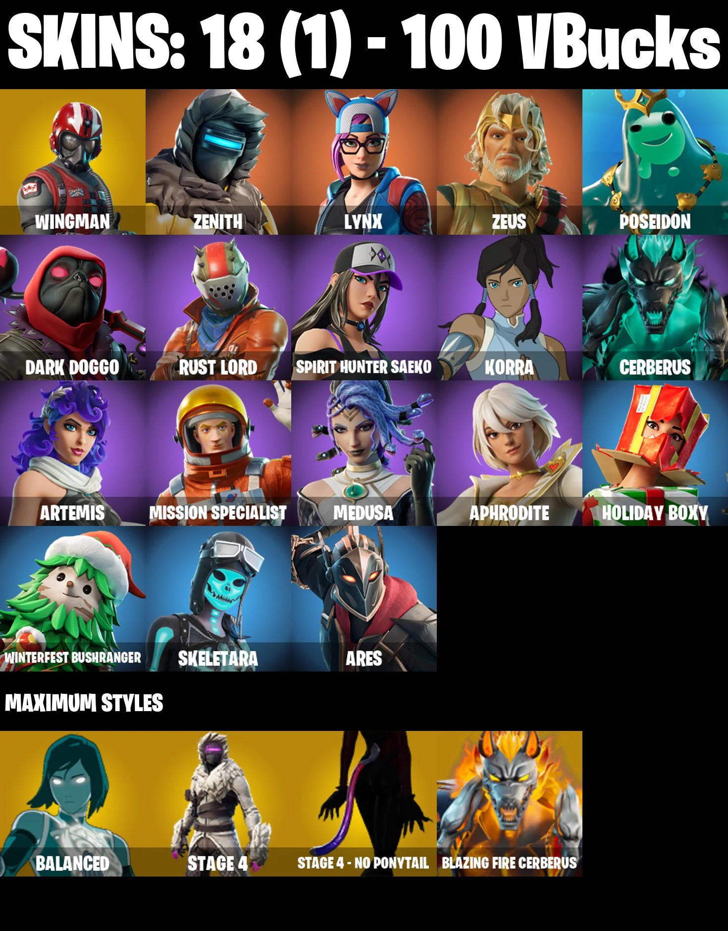(PC) 100 VB) 18 SKINS / Wingman | Zenith | Lynx | Zeus | Poseidon | Dark Doggo | Rust Lord | Spirit Hunter Saeko | Korra | Cerberus | Artemis /