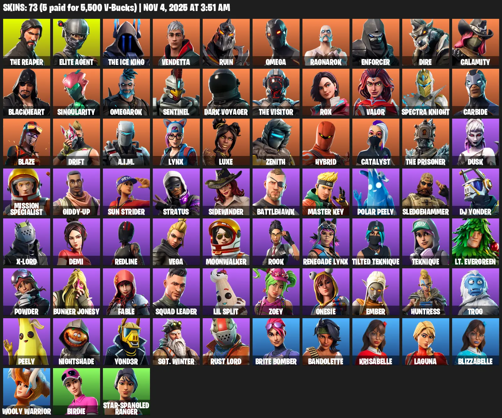 [PC/PSN] | 73 skins | 1350 V-bucks | Take The L | The Reaper | Elite Agent | Omega | The Ice King | Vendetta | Ruin | Ragnarok | #RNZ0569 | #MBFN