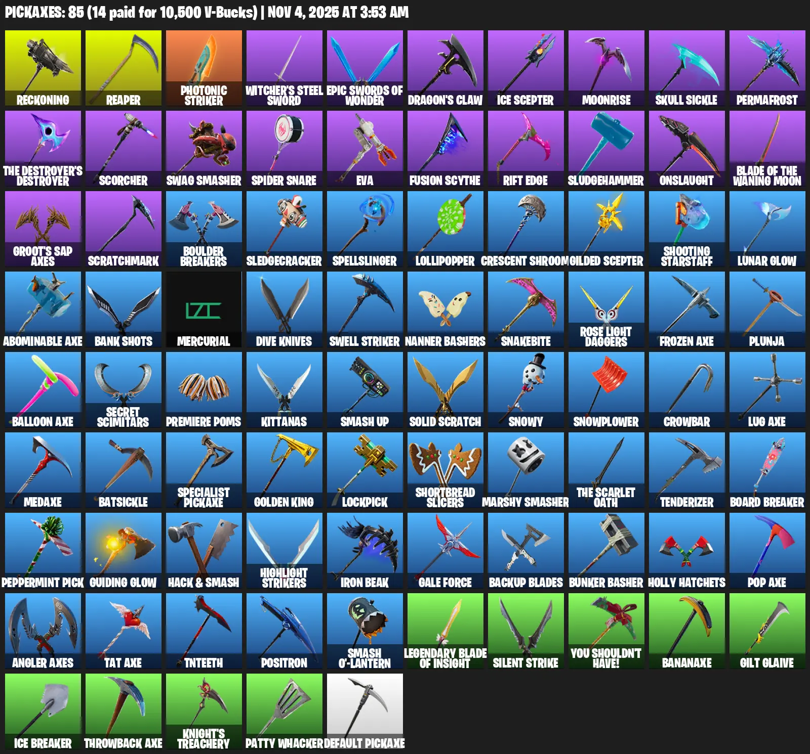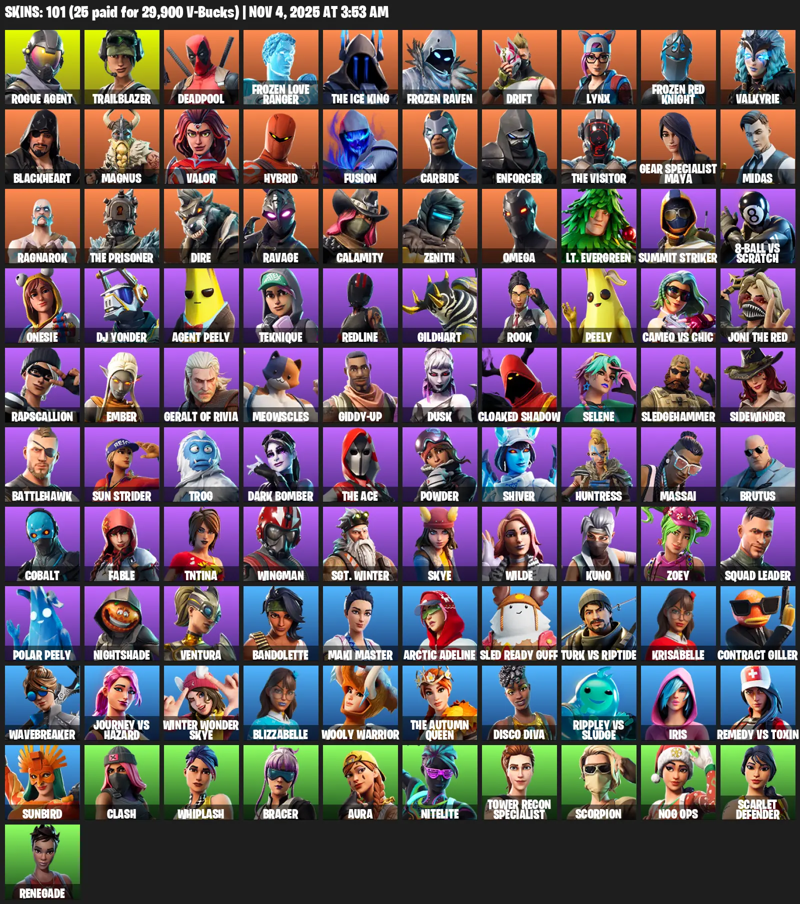 [PC/PSN/XBOX] | 101 skins | Omega | Reaper Axe | Rogue Agent | Trailblazer | Deadpool | Frozen Love Ranger | The Ice King | #KFZ2042 | #MBFN