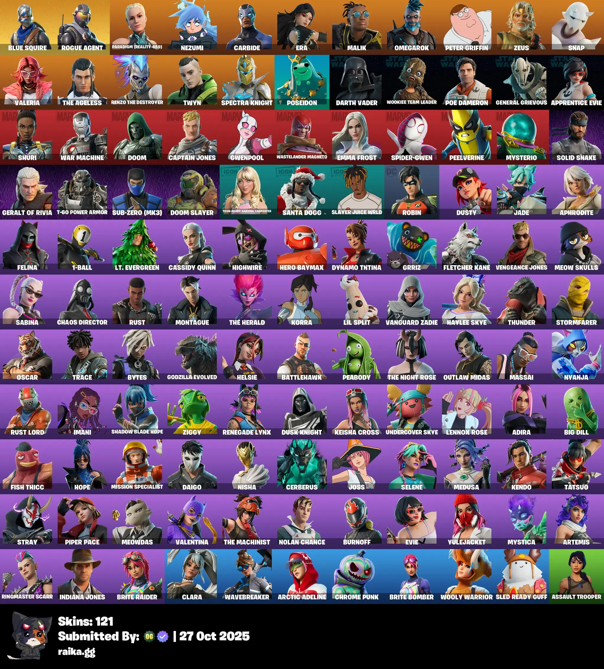 [PC/PSN/XBOX] 121 skins | Blue Squire | Take The L | Rogue Agent | Paradigm (Reality-659) | Nezumi | Carbide | Era | Malik | Omegarok | Peter Griffin | Zeus | Snap | 200 VB