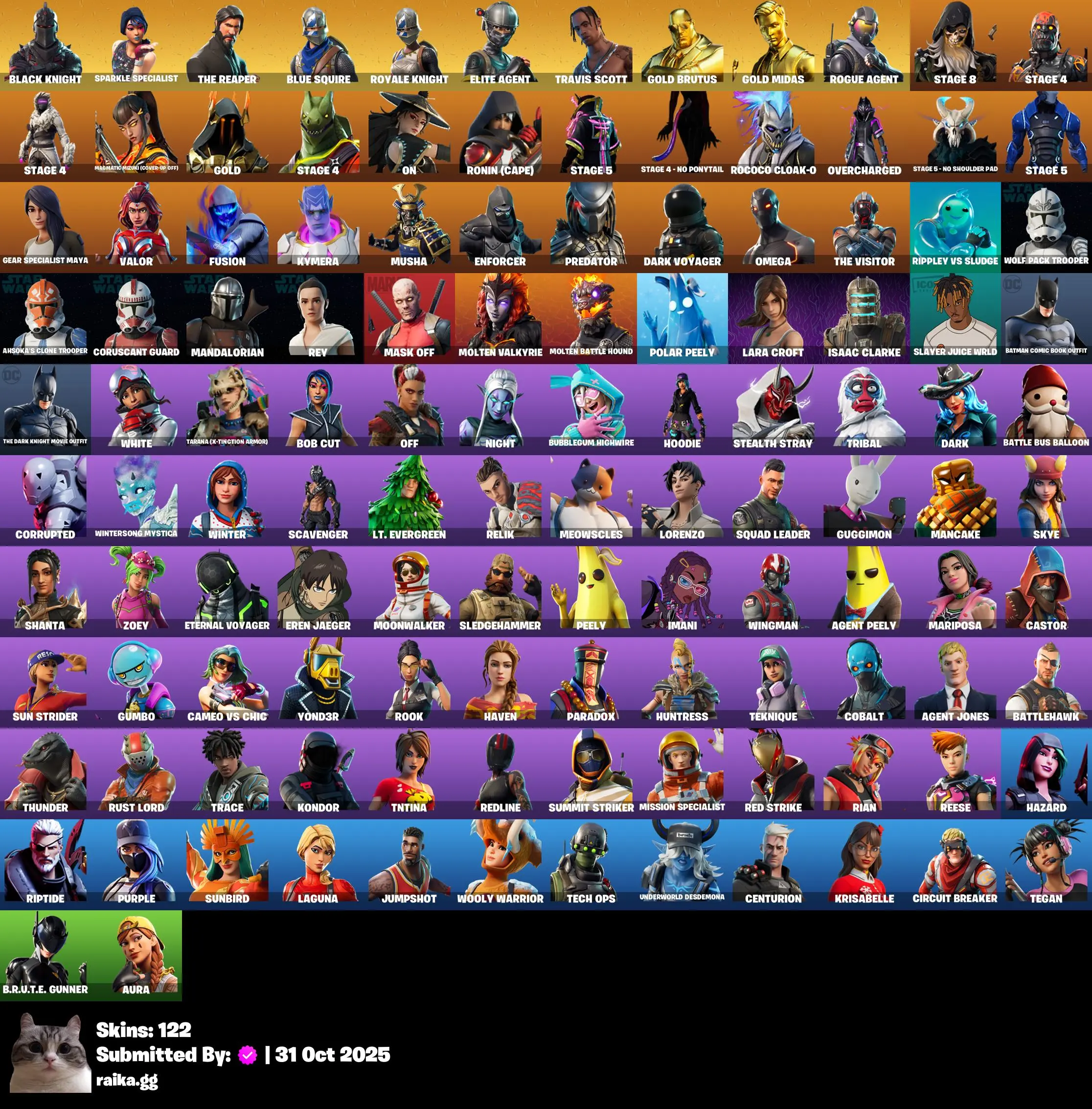 [PC/PSN/XBOX] 122 skins | Black Knight | Sparkle Specialist | The Reaper | Blue Squire | Royale Knight | Elite Agent | Travis Scott | Gold Brutus | 25
