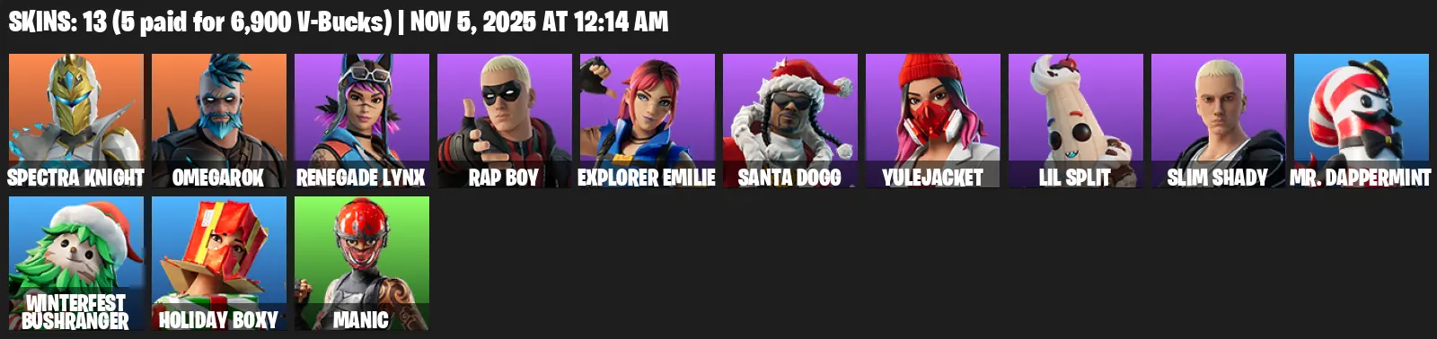 [PC/PSN/XBOX] | 13 skins | Spectra Knight | Omegarok | Renegade Lynx | Rap Boy | Explorer Emilie | Santa Dogg | Yulejacket | #XJA4598 | #MBFN
