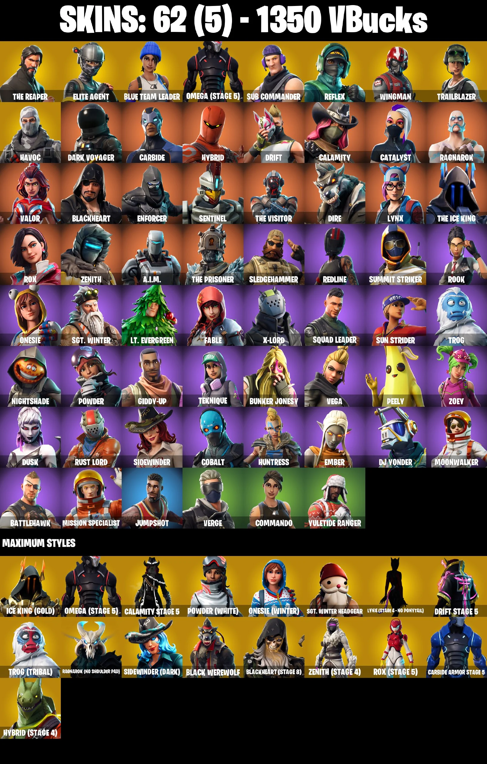 (PC/PSN/XBOX) 1350 VB) 62 SKINS / THE REAPER / ELITE AGENT / BLUE TEAM LEADER / OMEGA (STAGE 5) / SUB COMMANDER / REFLEX / WINGMAN /