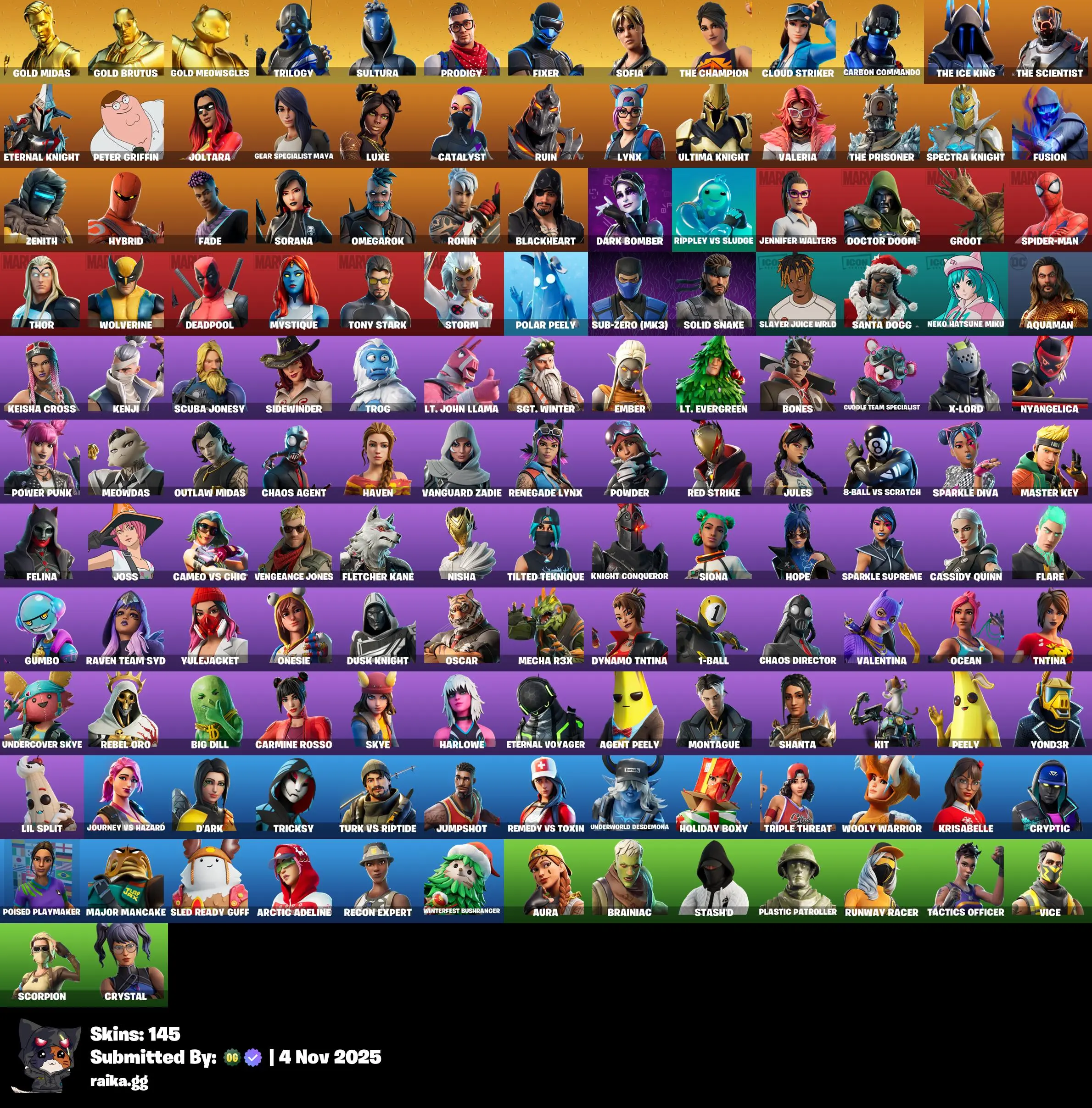 [PC/PSN/XBOX] 145 skins | Reaper | Take The L | Gold Midas | Gold Brutus | Gold Meowscles | Trilogy | Sultura | Prodigy | Fixer | Sofia | The Champion | Cloud Striker | 1150 VB
