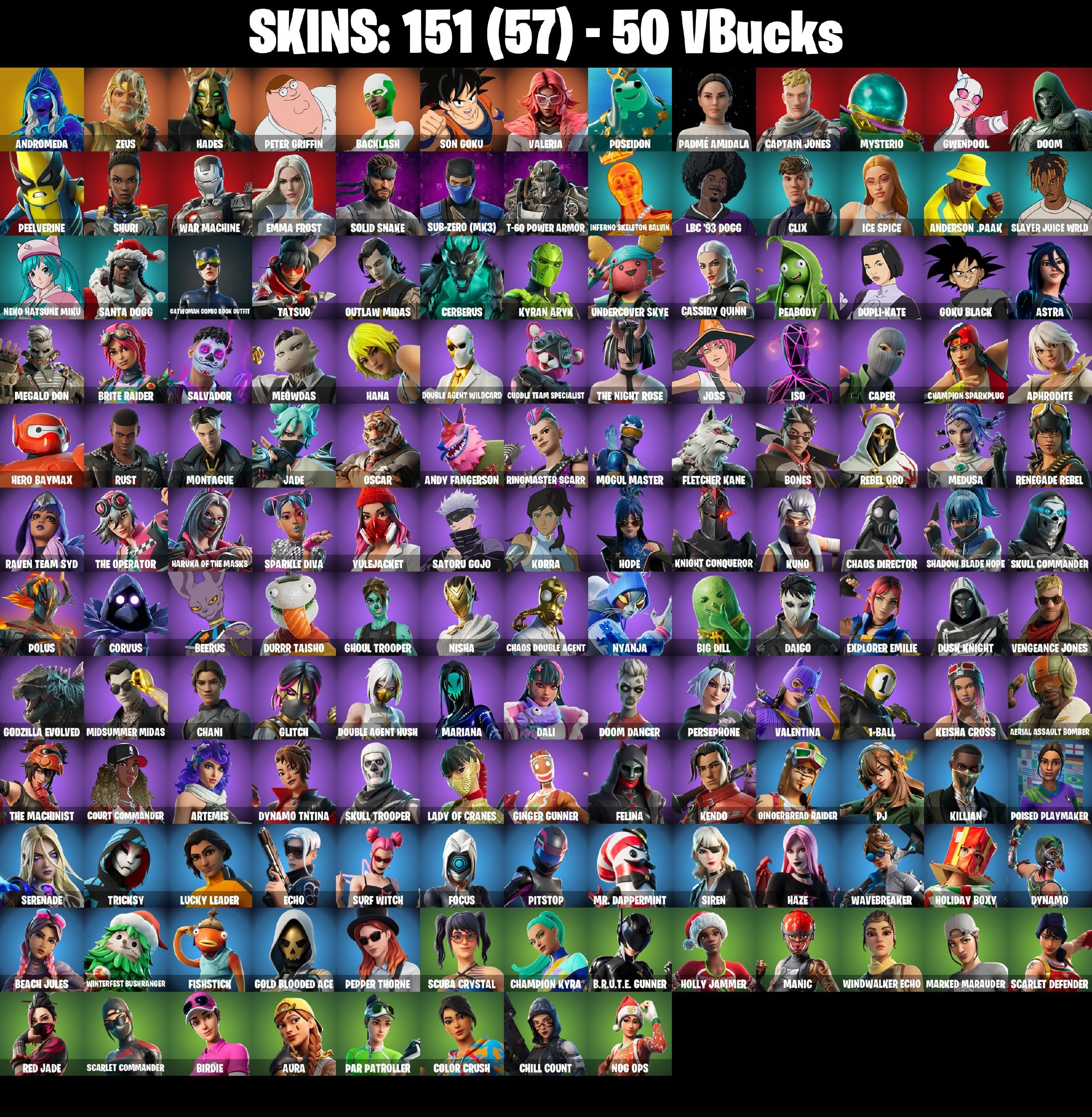 [PC/PSN/XBOX] 151 skins | original mail you can change | Andromeda | Zeus | Hades | Peter Griffin | Backlash | Son Goku | Valeria | Poseidon | Padmé Amidala | Captain Jones | Mysterio | 50 VB
