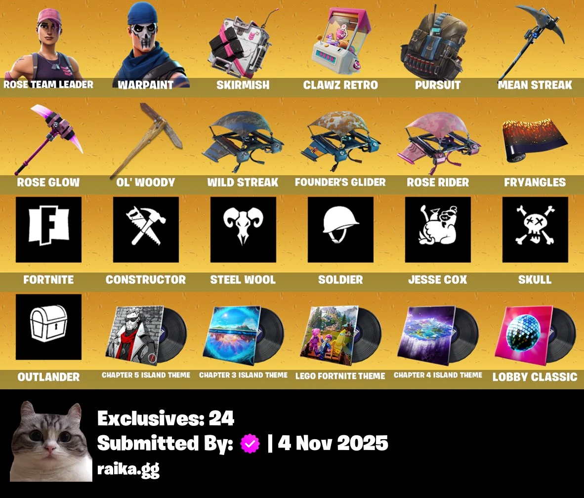 [PC/PSN/XBOX] 2 skins | OG STW | Skirmish | Clawz Retro | Pursuit | Mean Streak | Rose Glow | Ol' Woody | Ride The Pony | Wild Streak | Founder's Glid
