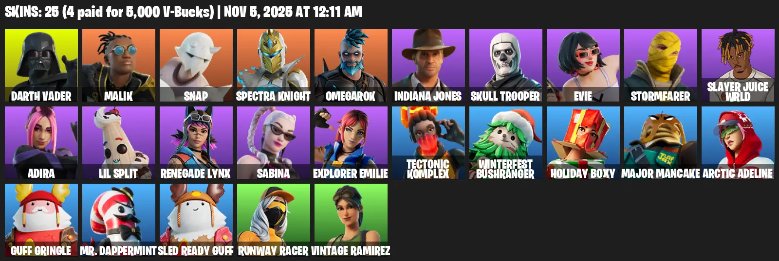 [PC/PSN/XBOX] | 25 skins | Reaper Axe | Darth Vader | Malik | Snap | Spectra Knight | Omegarok | Indiana Jones | Skull Trooper | #ZPD7723 | #MBFN
