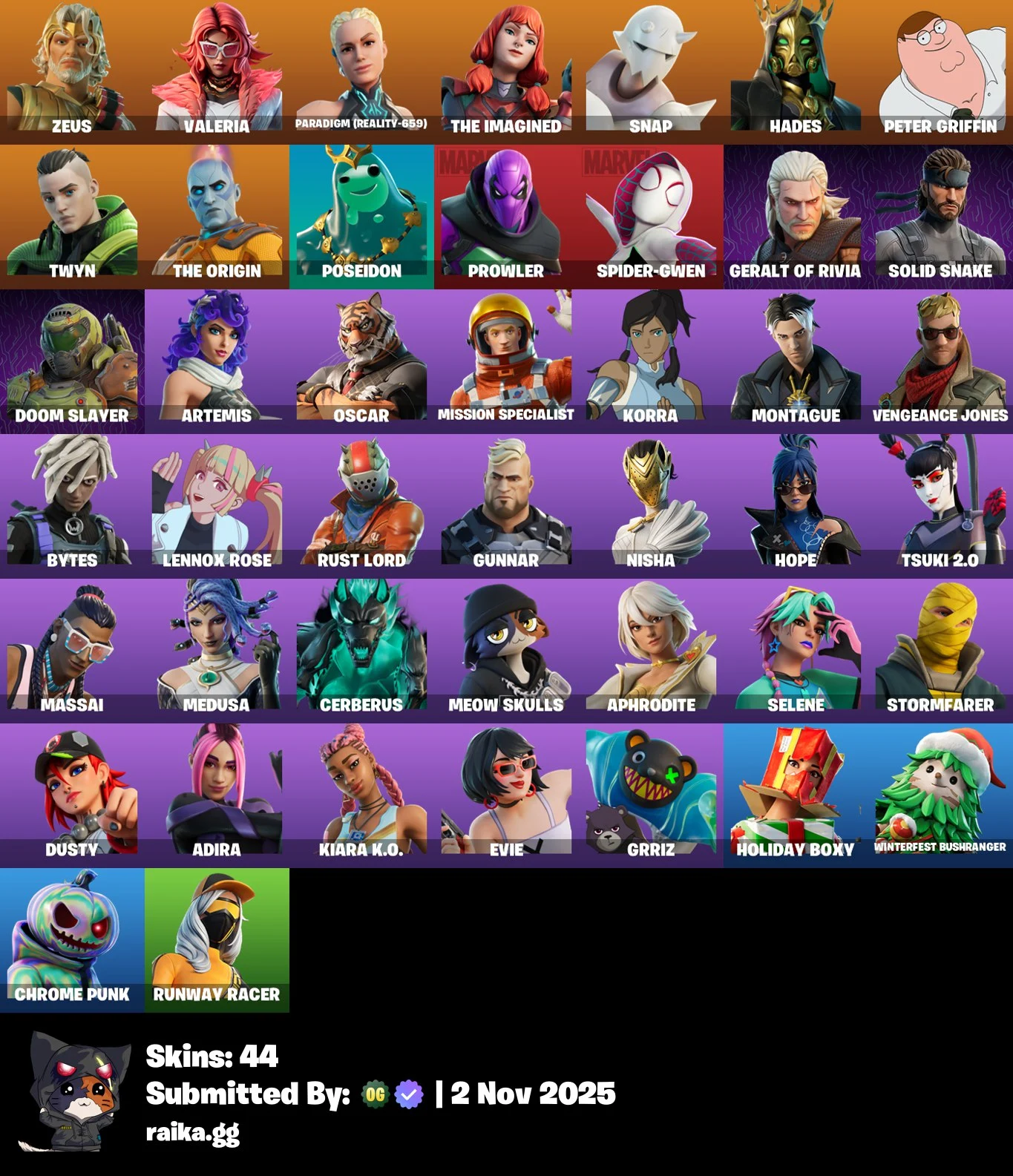 [PC/PSN/XBOX] 44 skins | Take The L | Zeus | Valeria | Paradigm (Reality-659) | The Imagined | Snap | Hades | Peter Griffin | Twyn | The Origin | Poseidon | Prowler | 650 VB