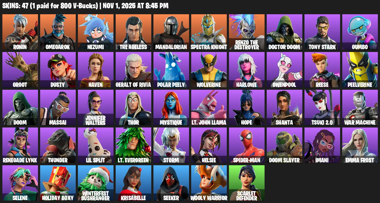 [PC/PSN/XBOX] | 47 skins | Mako | Ronin | Omegarok | Nezumi | The Ageless | Mandalorian | Spectra Knight | Renzo the Destroyer | #QGD2343 | #MBFN