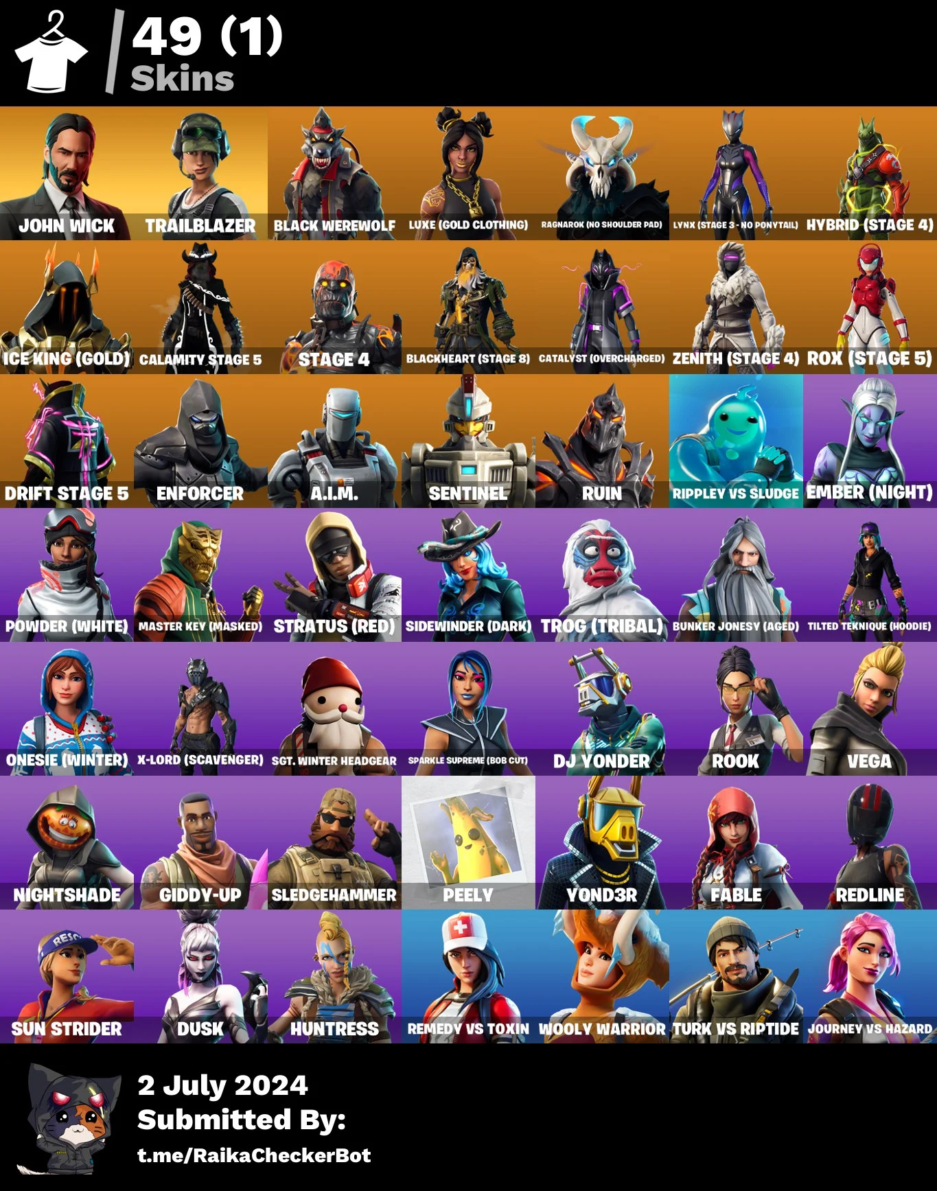 [PC/PSN/XBOX] 49 skins | John Wick | Trailblazer | Black Werewolf | Luxe (Gold Clothing) | Ragnarok (No Shoulder Pad) | 1400 VB