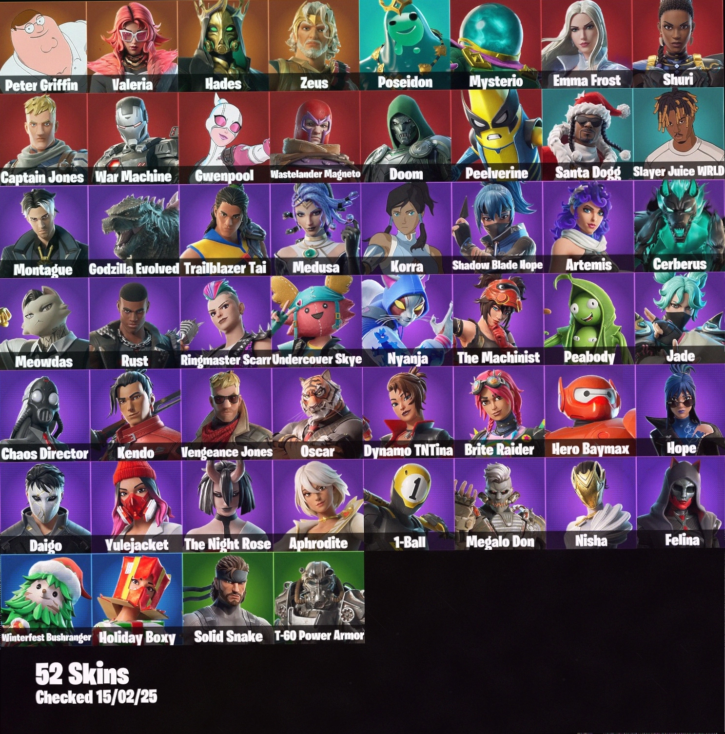 [PC/PSN/XBOX] 52 Skins + Winterfest Bushranger + Mysterio + Montague + Godzilla Evolved + Peter Griffin + Trailblazer Tai + Medusa + 1050 VB ⸱ PARENTAL CONTROL #ITEM-169374