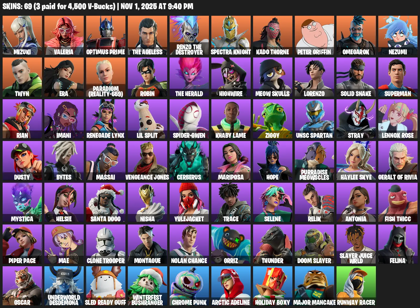 [PC/PSN/XBOX] | 69 skins | Mizuki | Valeria | Optimus Prime | The Ageless | Renzo the Destroyer | Spectra Knight | Kado Thorne | #GNU0272 | #MBFN