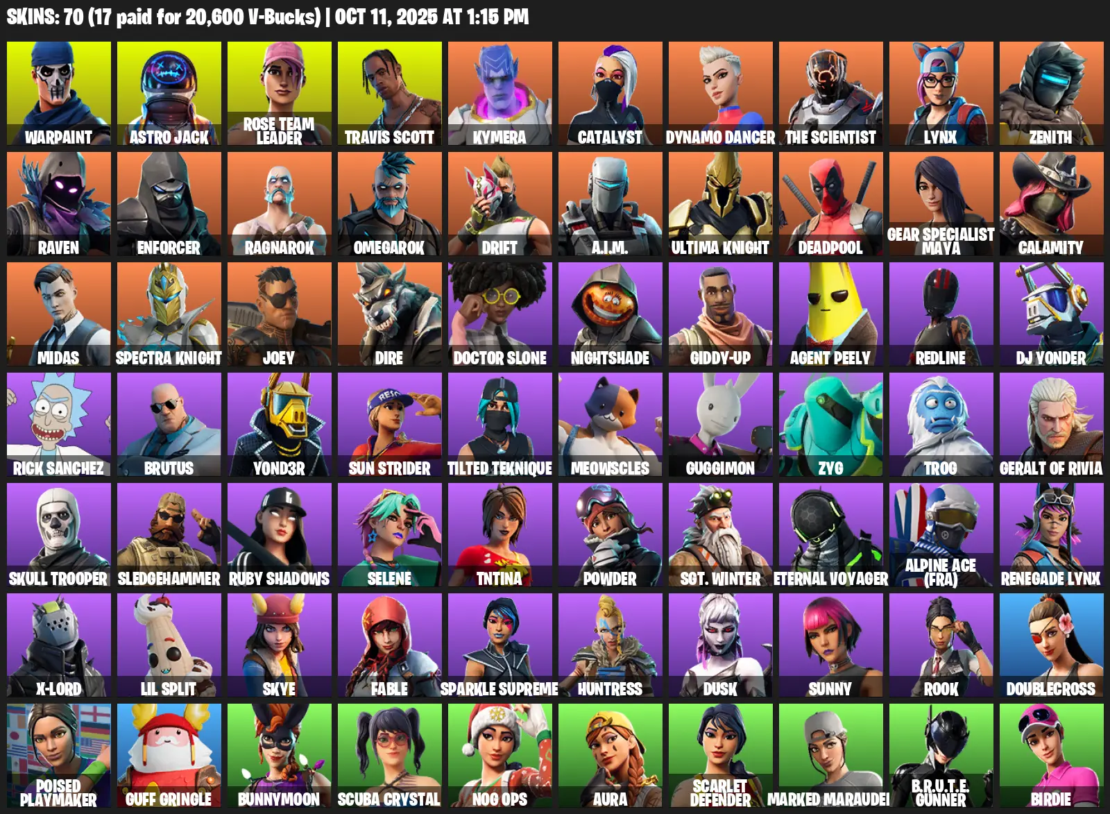 [PC/PSN/XBOX] | 70 skins | 1175 V-bucks | OG STW | Travis Scott | Warpaint | Astro Jack | Rose Team Leader | Kymera | Catalyst | Dynamo Dancer | S4G