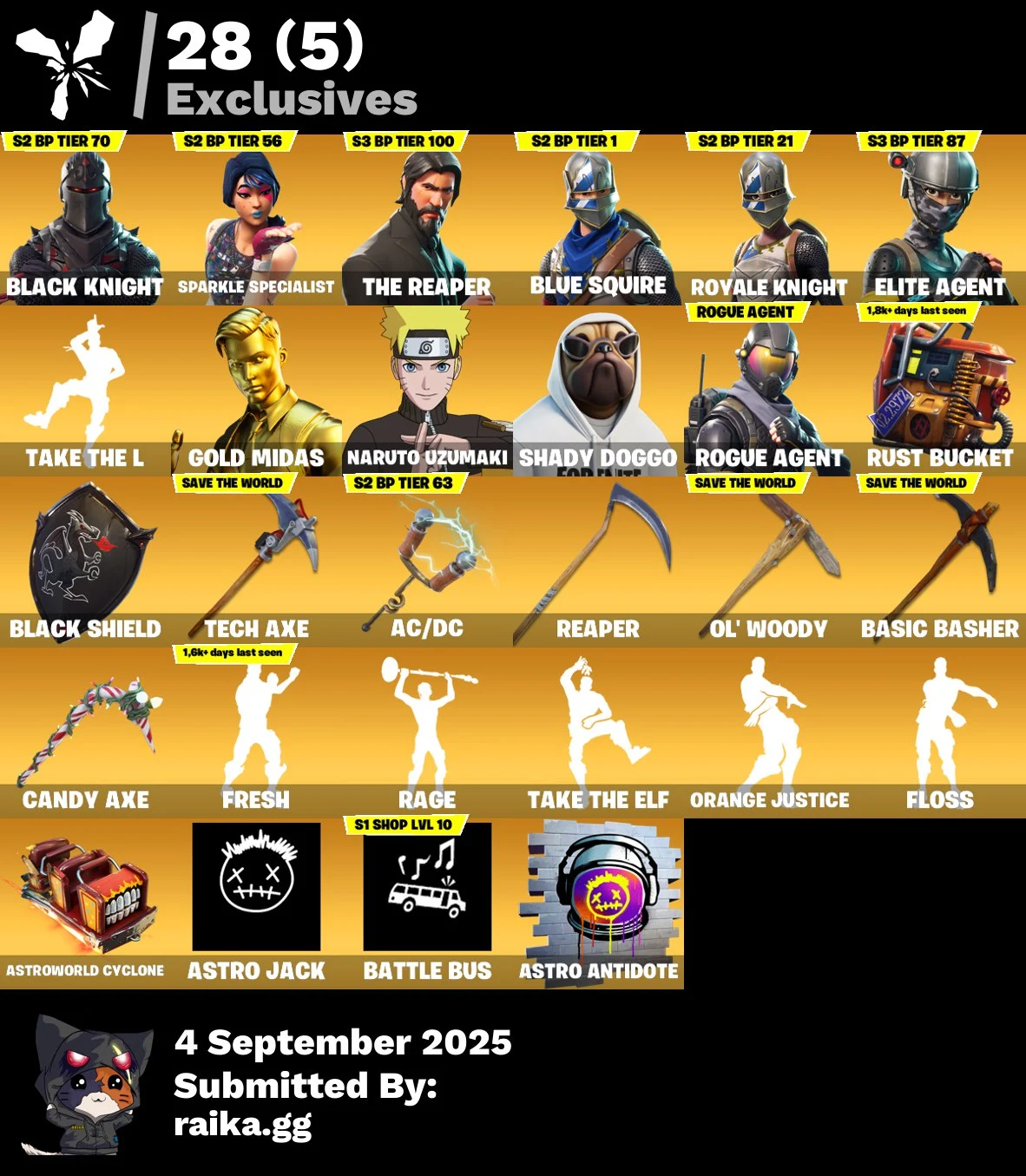 [PC/PS/XBOX] 205 Skins ✔ Black Knight ✔ Sparkle Specialist ✔ The Reaper ✔ Blue Squire ✔ Royale Knight ✔ Elite Agent ✔ Gold Midas ✔ 210 VB