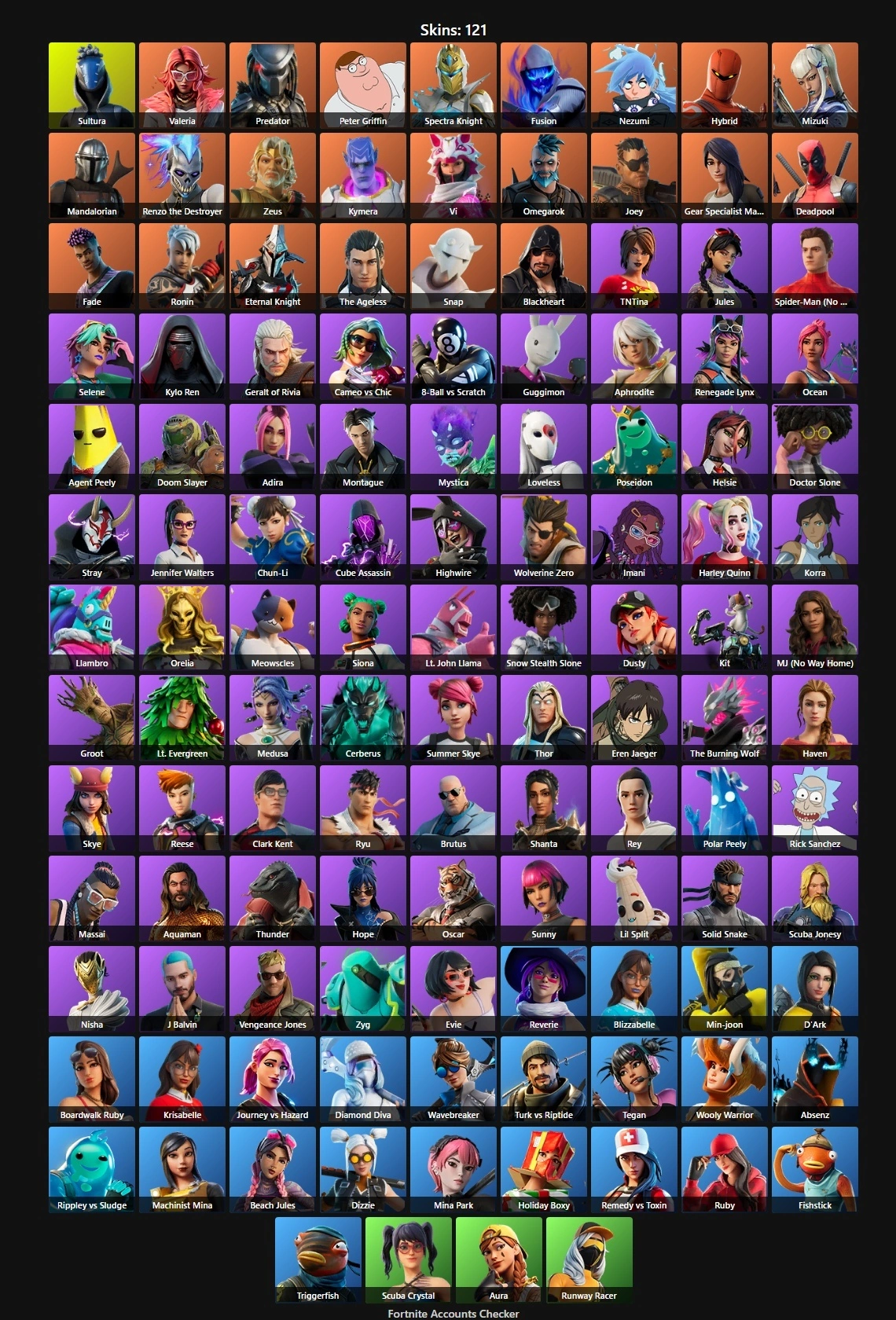 PC/XBOX/PSN 121 Skins⚡ | Deadpool | Chun-Li | Sultura | Valeria | Predator | Peter Griffin | Spectra Knight | Fusion | Nezumi | Hybrid | Mizuki | Mandalorian