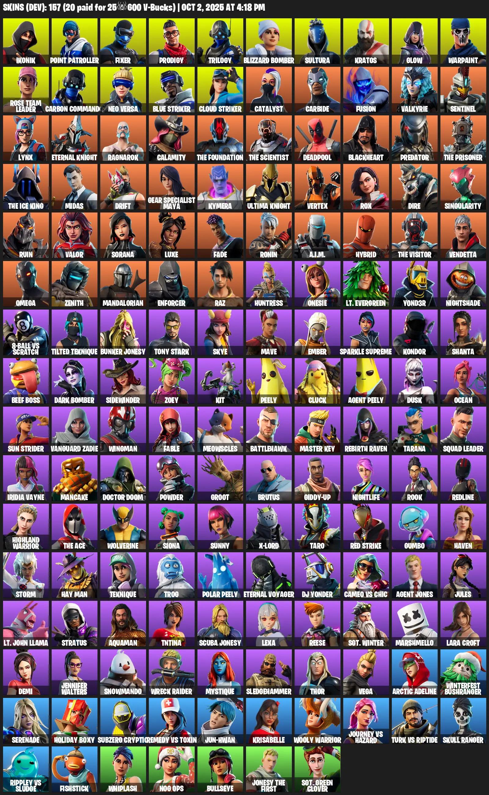 [PC/XBOX/PSN] 157 Skins | IKONIK | Point Patroller | Fixer | Prodigy | Trilogy | Blizzard Bomber | Sultura | Kratos | Glow | Warpaint | Rose Team Leader | Carbon Commando | Neo Versa | Blue Striker | Cloud Striker | Catalyst | Carbide | Fusion | Valkyrie