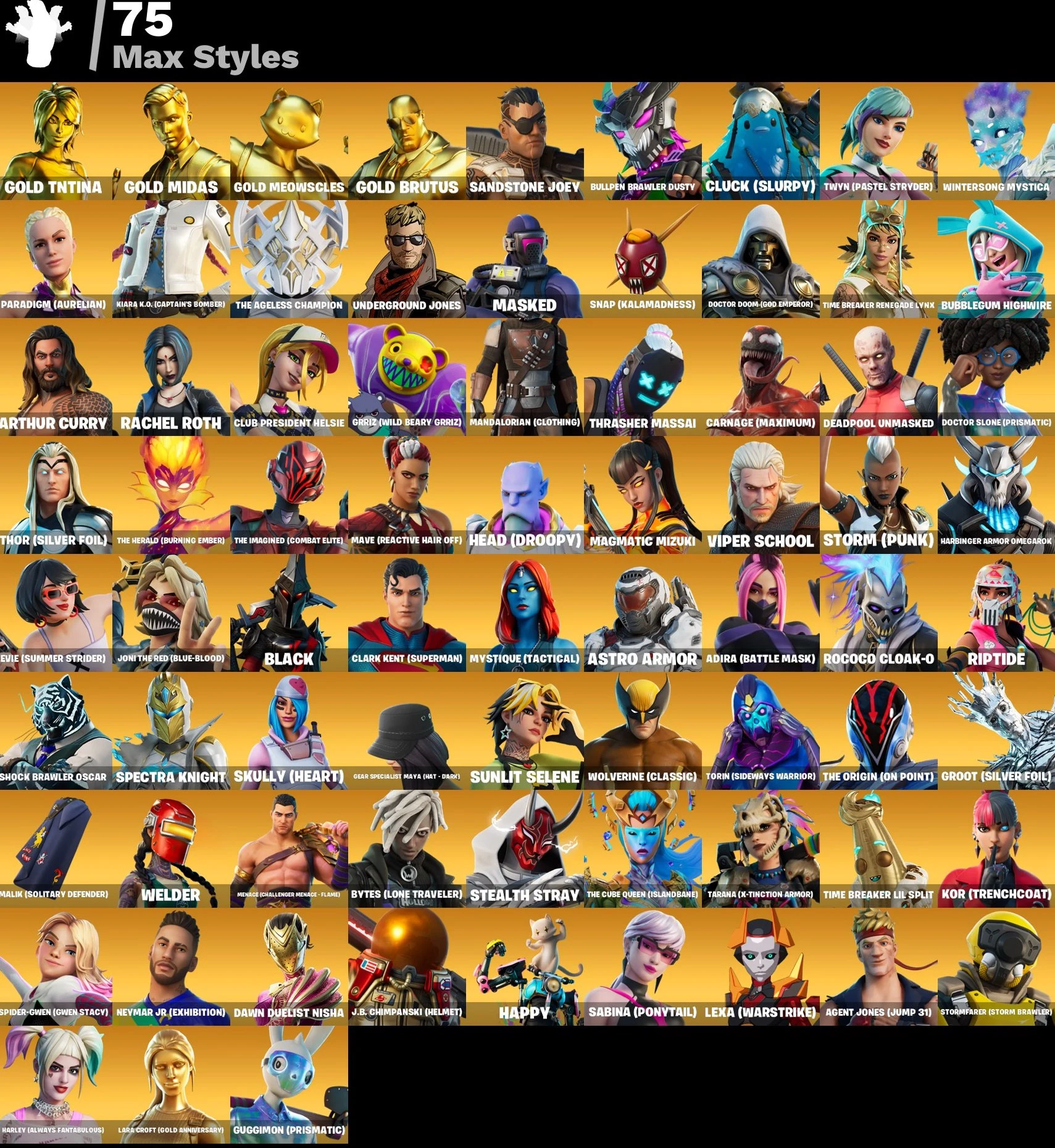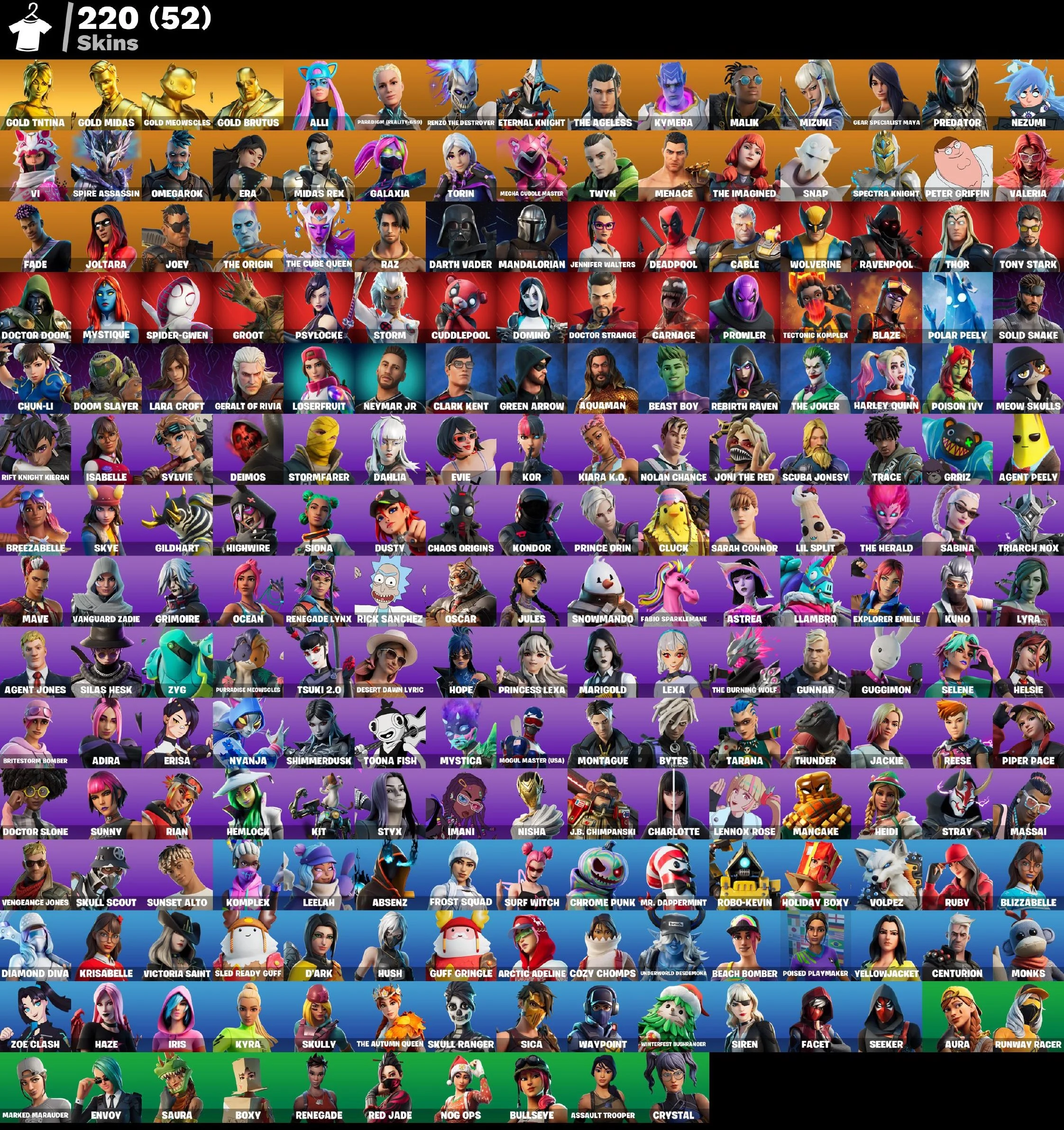 PSN-PC-XBOX FA 220 SKINS ⸱ HEIDI ⸱ GOLD MIDAS ⸱ GALAXIA ⸱ BEAST BOY ⸱ REBIRTH RAVEN ⸱ JOLTARA ⸱ HEMLOCK ⸱ CHUN LI ZK511