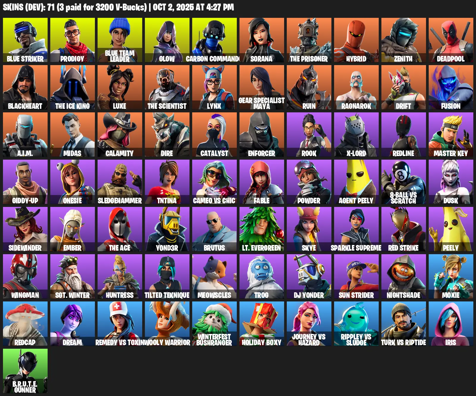 [PSN/XBOX/PC] 71 Skins | Blue Striker | Prodigy | Blue Team Leader | Glow | Carbon Commando | Sorana | The Prisoner | Hybrid | Zenith | Deadpool | Blackheart | The Ice King | Luxe | The Scientist | Lynx | Gear Specialist Maya | Ruin | Ragnarok | Drift