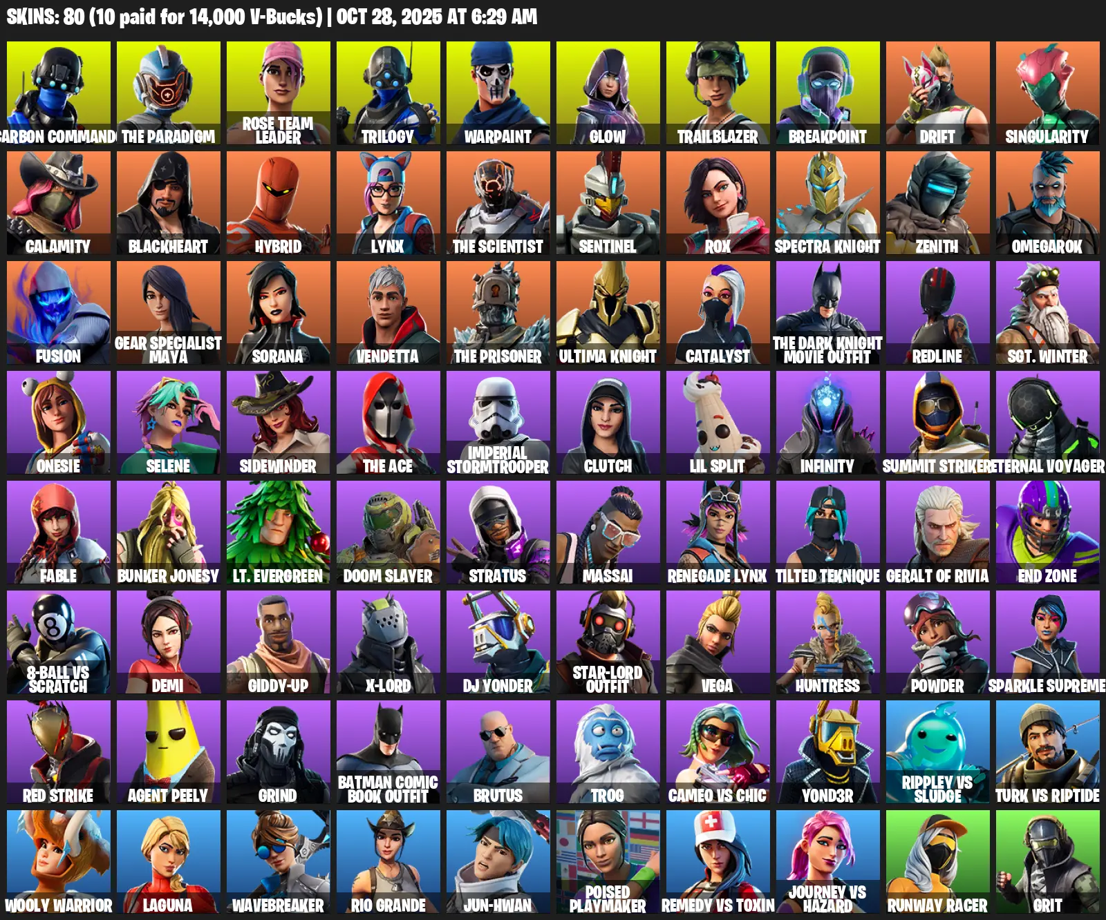 [PSN/XBOX/PC] 80 Skins | Carbon Commando | The Paradigm | Rose Team Leader | Trilogy | Warpaint | Glow | Trailblazer | Breakpoint | Drift | Singularity | Calamity | Blackheart | Hybrid | Lynx | The Scientist | Sentinel | Rox | Spectra Knight | Zenith