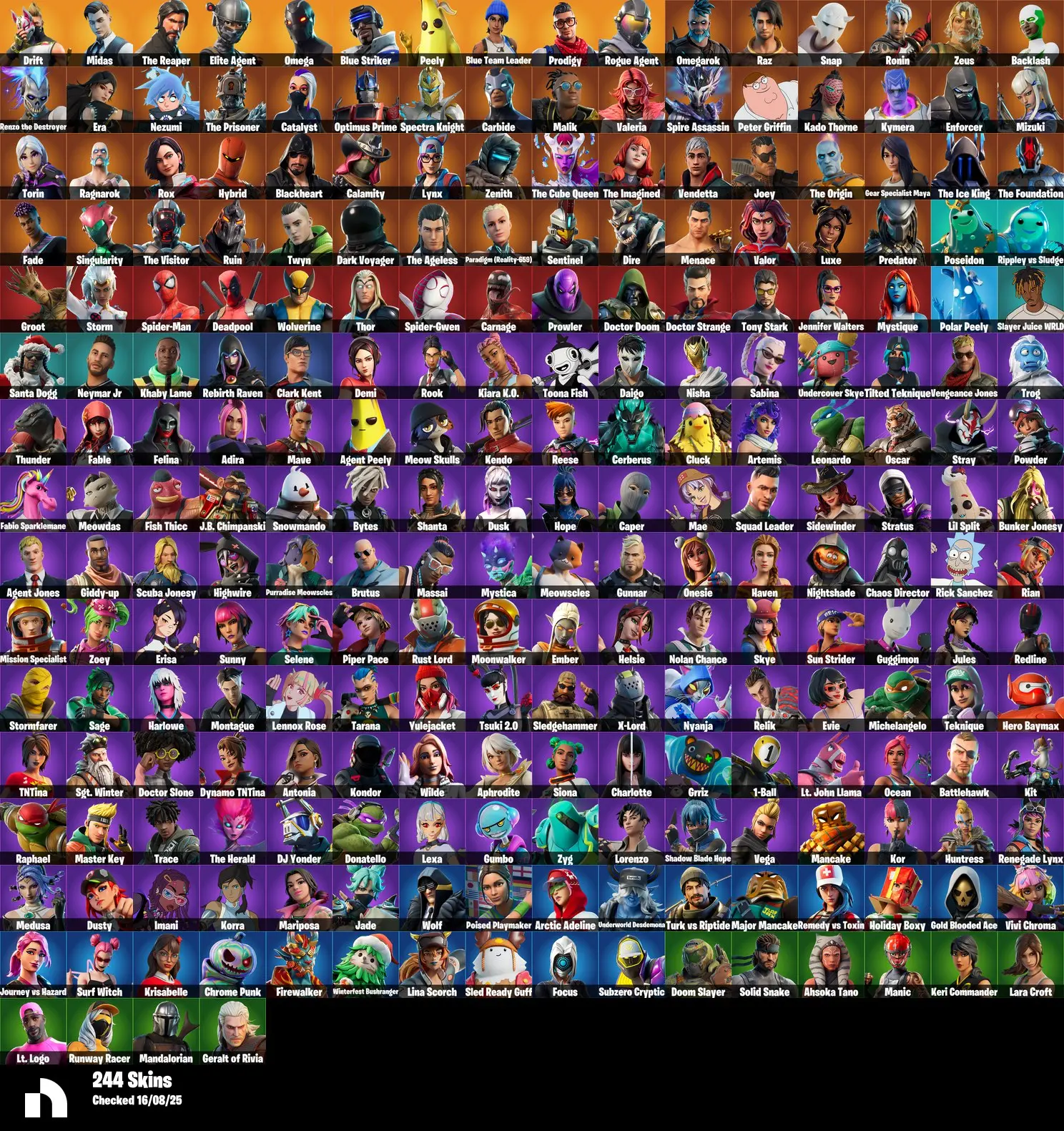#R3410 [PC/PSN/XBOX] 244 Skins | Take The L | The Reaper | Elite Agent | Omega | Drift | Rogue Agent | Midas | Blue Striker | Peely | 150 VB