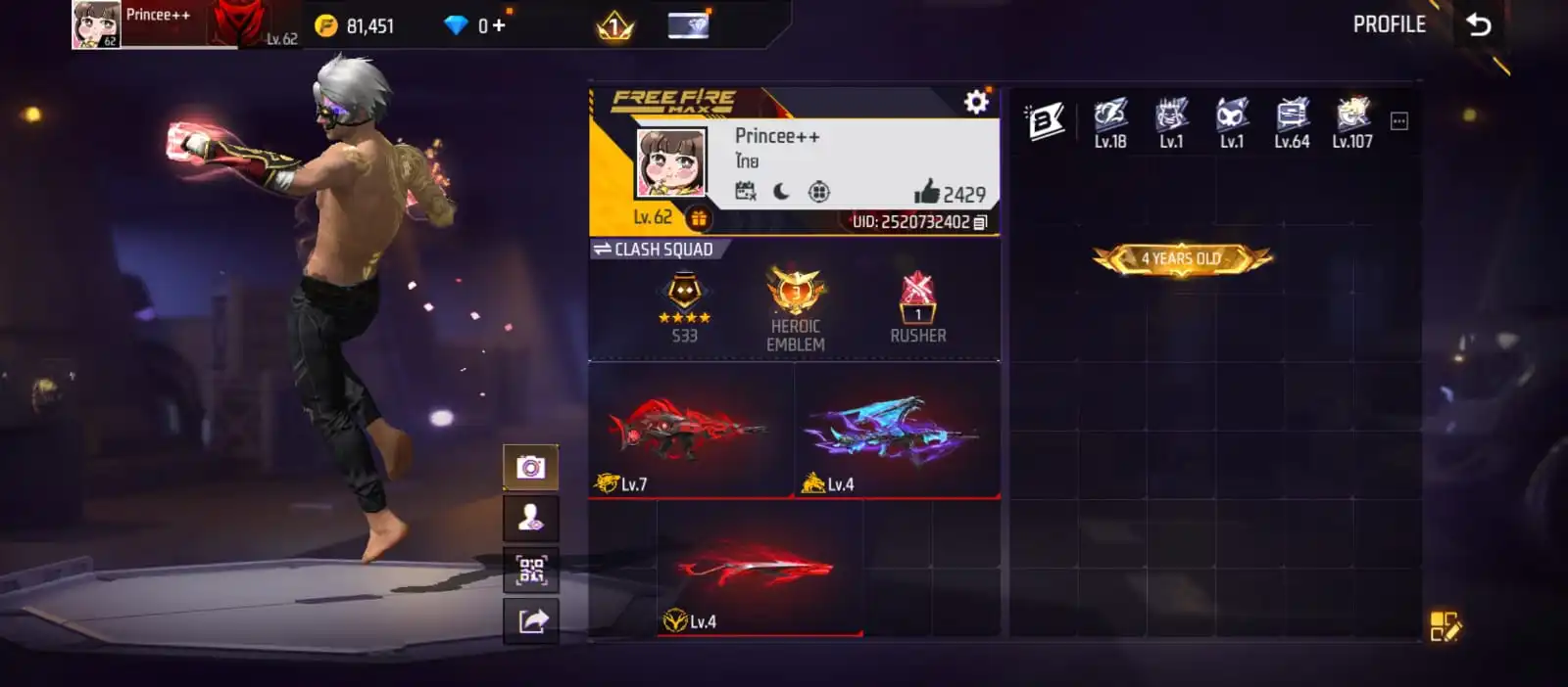 V38|LVL62|329COSTUME(22MYTHIC)|323WEAPON(3EVO+47MYTHIC)|MEGALODONAPLHA-SCARLVLMAX|BLUEFLAMEDRACO-AK47LVL4|SCORPIOSHATTER-M1014LVL4