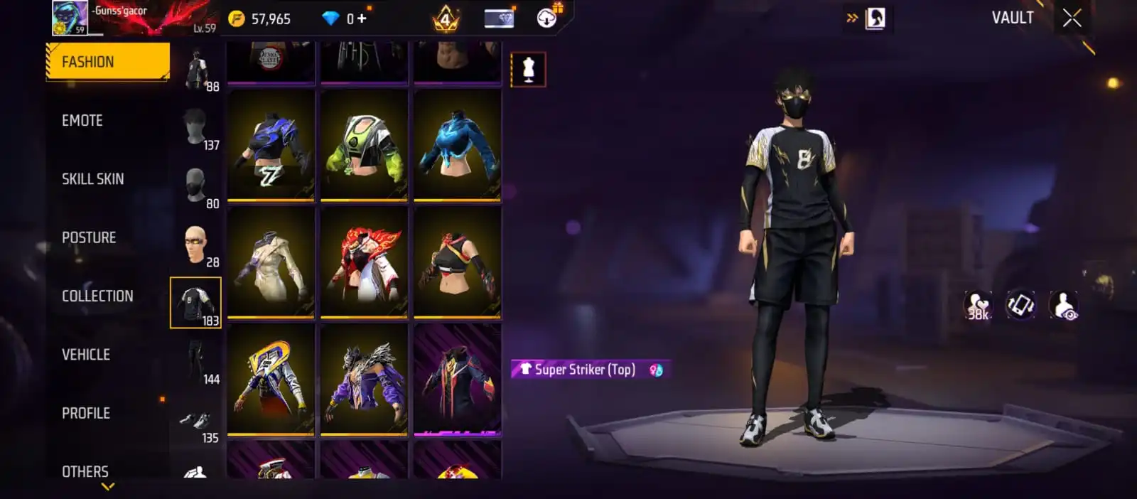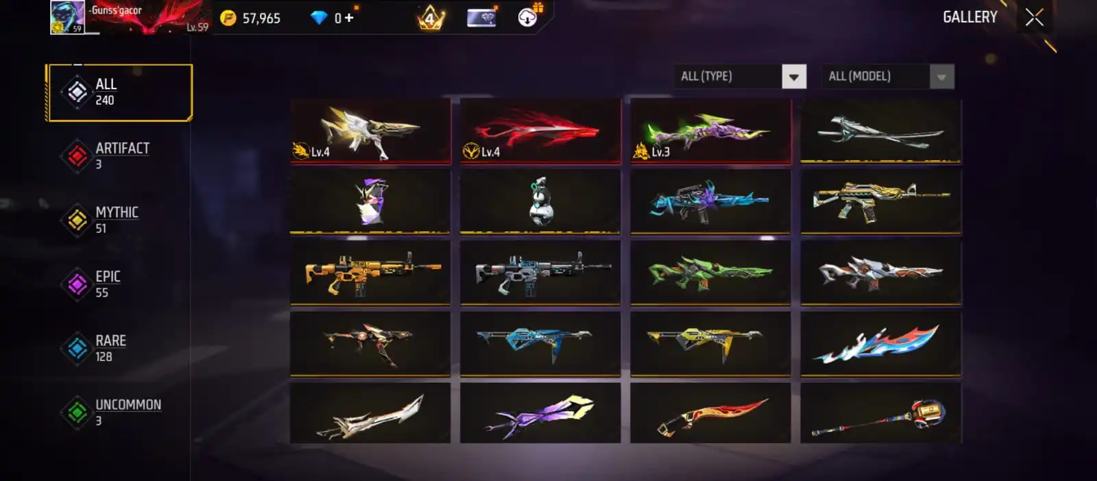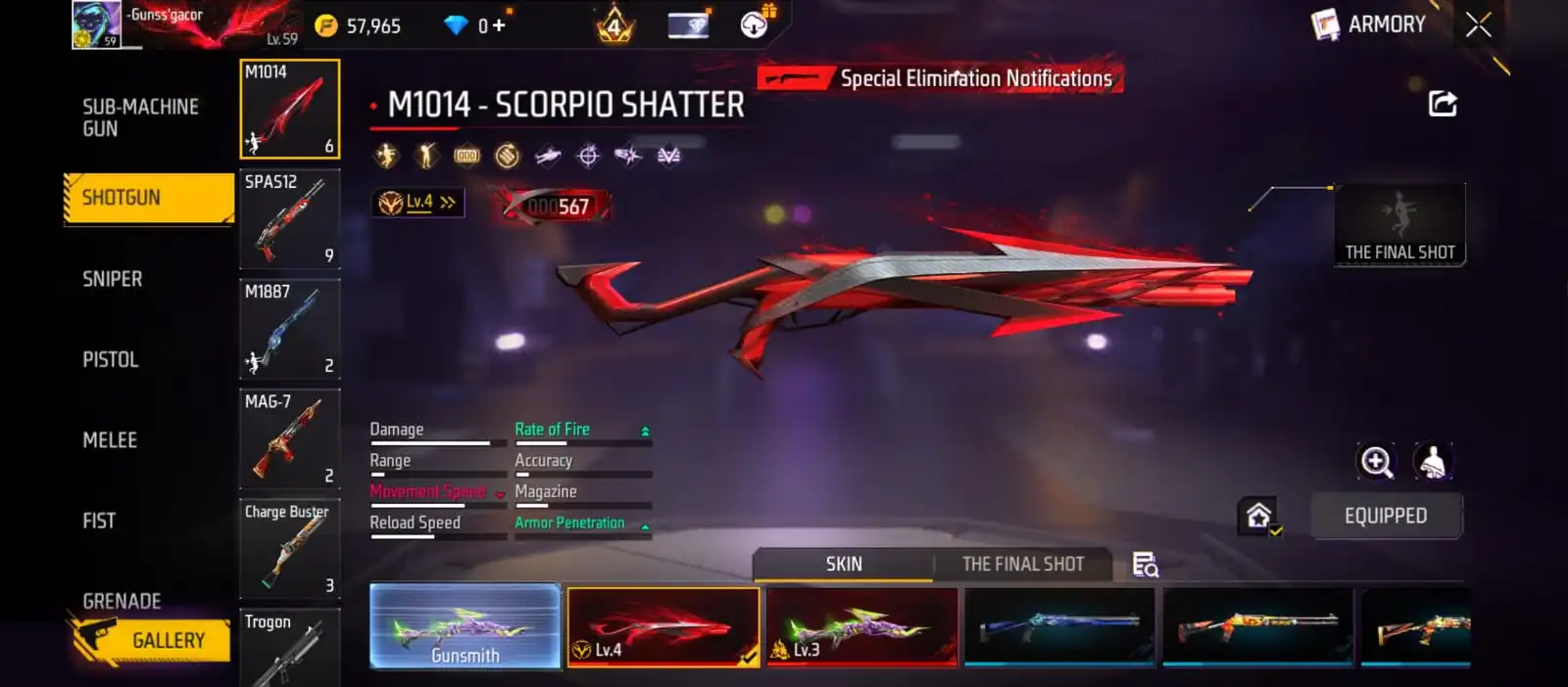 V41|LVL59|183COSTUME(16MYTHIC)|240WEAPON(3EVO+51MYTHIC)|PLATINUMDIVINITY-MP5LVL4|SCORPIOSHATTER-M1014LVL4|GREENFLAMEDRACO-M1014LVL3