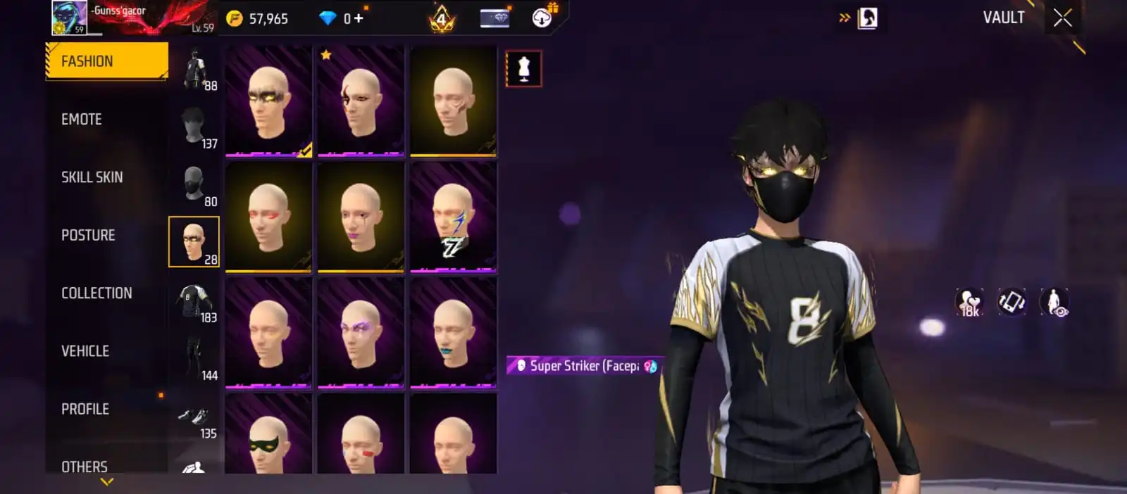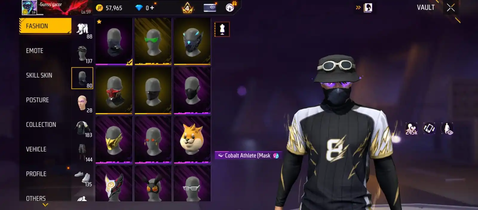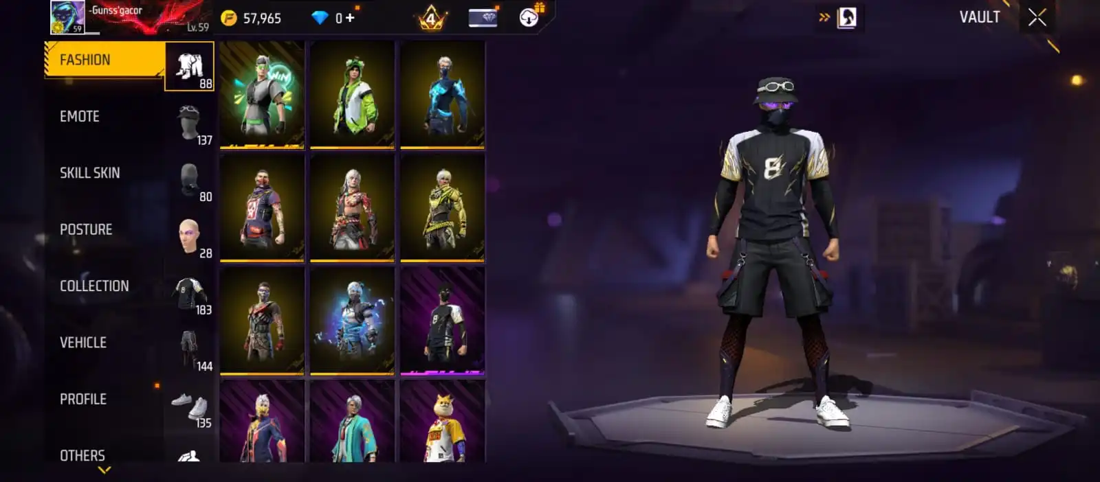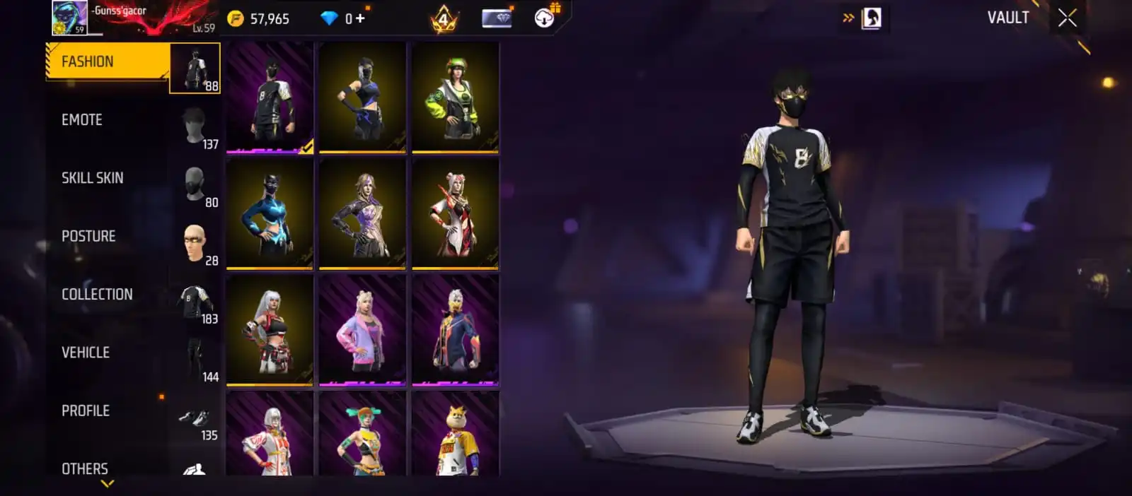V41|LVL59|183COSTUME(16MYTHIC)|240WEAPON(3EVO+51MYTHIC)|PLATINUMDIVINITY-MP5LVL4|SCORPIOSHATTER-M1014LVL4|GREENFLAMEDRACO-M1014LVL3