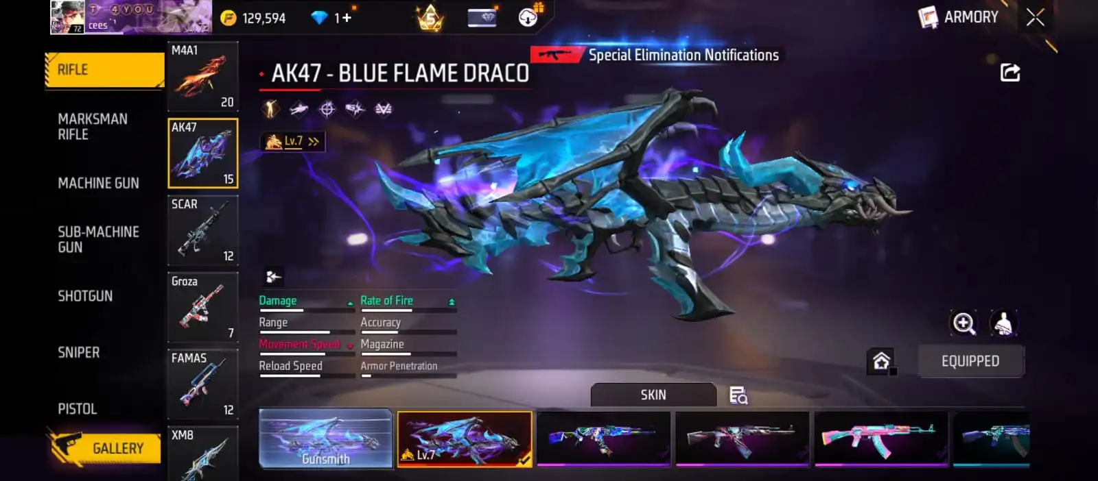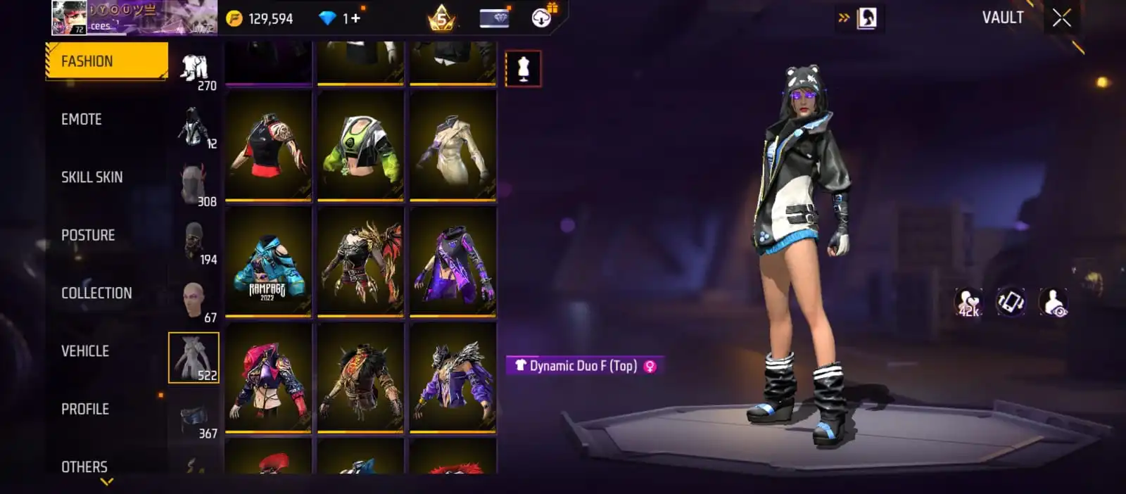 V44|LVL72|522COSTUME(43MYTHIC)|551WEAPON(4EVO+95MYTHIC)|BLUEFLAMEDRACO-AK47LVLMAX|INFERNALDRACO-M4A1LVL6|DESTINYGUARDIAN-XM8LVL4