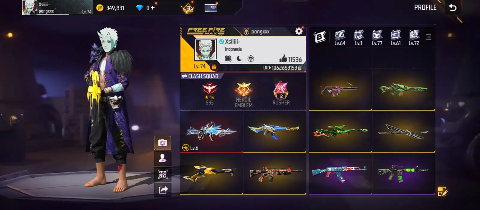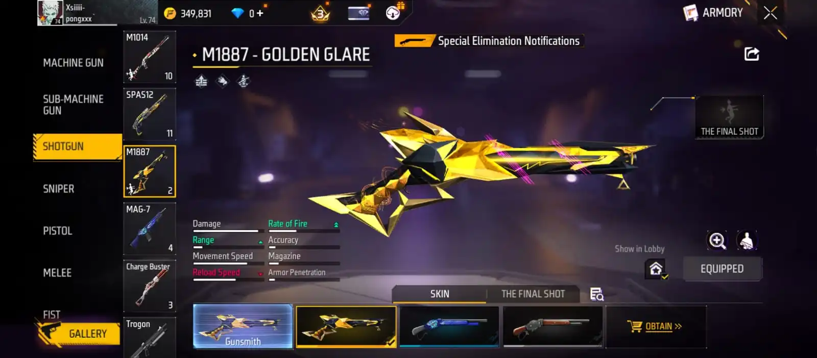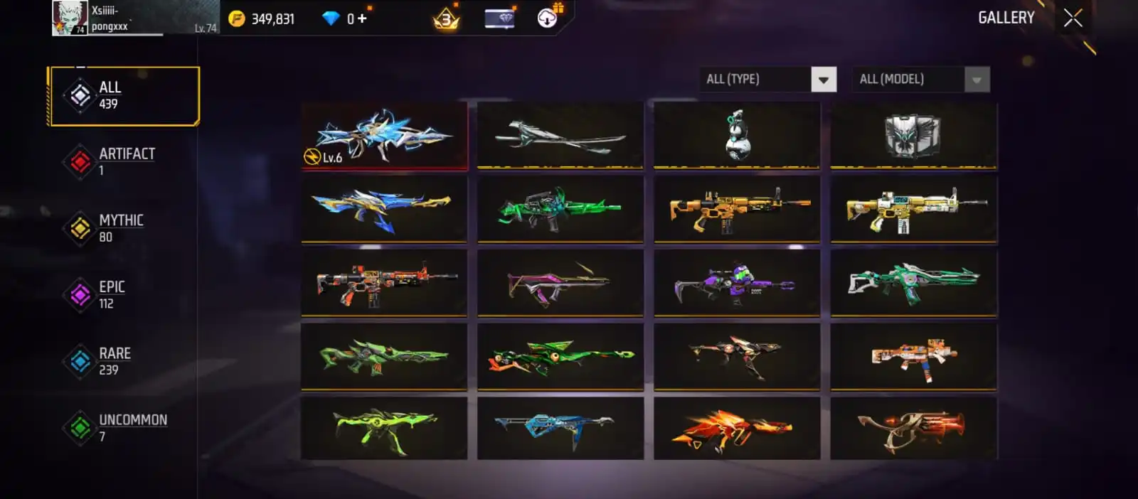 V46|LVL74|488COSTUME(26MYTHIC)|439WEAPON(2EVO+80MYTHIC)|DESTINYGUARDIAN-XM8LVL6|BOOYAHDAY-UMPLVL4|GOLDENGLARE-M1887