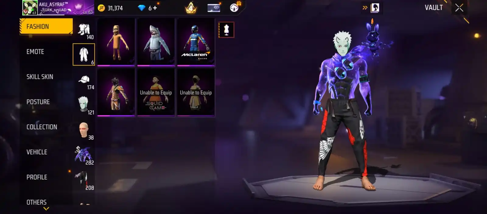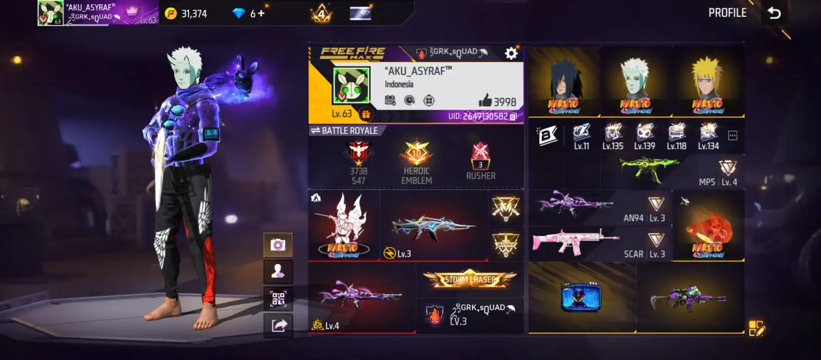 V47|LVL63|282COSTUME(18MYTHIC)|304WEAPON(2EVO+60MYTHIC)|EVILHOWLER-AN94LVL4|DESTINYGUARDIAN-XM8LVL3|SANDSTORSHIMMER -M1887