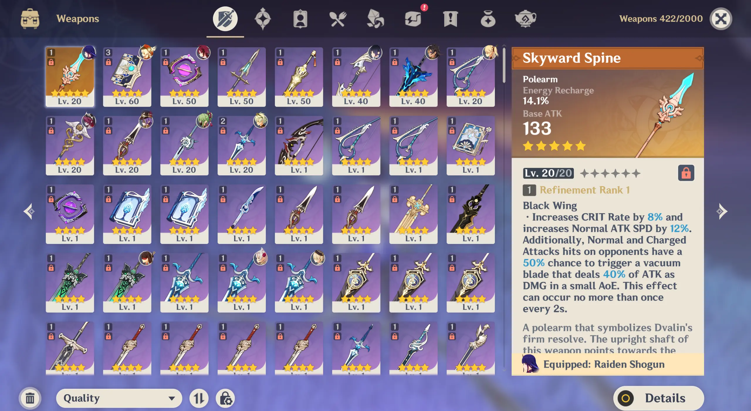 NA AR50 | 5 stars*10 RAIDEN SHOGUN | KLEE | KAMISATO AYAKA | FURINA | YELAN | DEHYA(C1) | QIQI | TIGHNARI | MONA | SKYWARD SPINE + lots of 4* characters and weapons