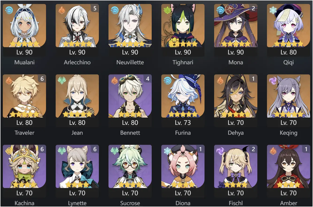 Varesa Mualani Arlecchino C5R1 , Furina Neuvillette AR57