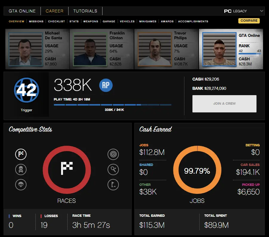 SOCIAL CLUB / ROCKSTAR / PC / LEGACY  |  $28.3M total money(bank&cash)  |  GTA5 ONLINE RP LVL(Level) 42  |  MALE  | STORY MODE avaliable | Changable Email | HANDCRAFTED
